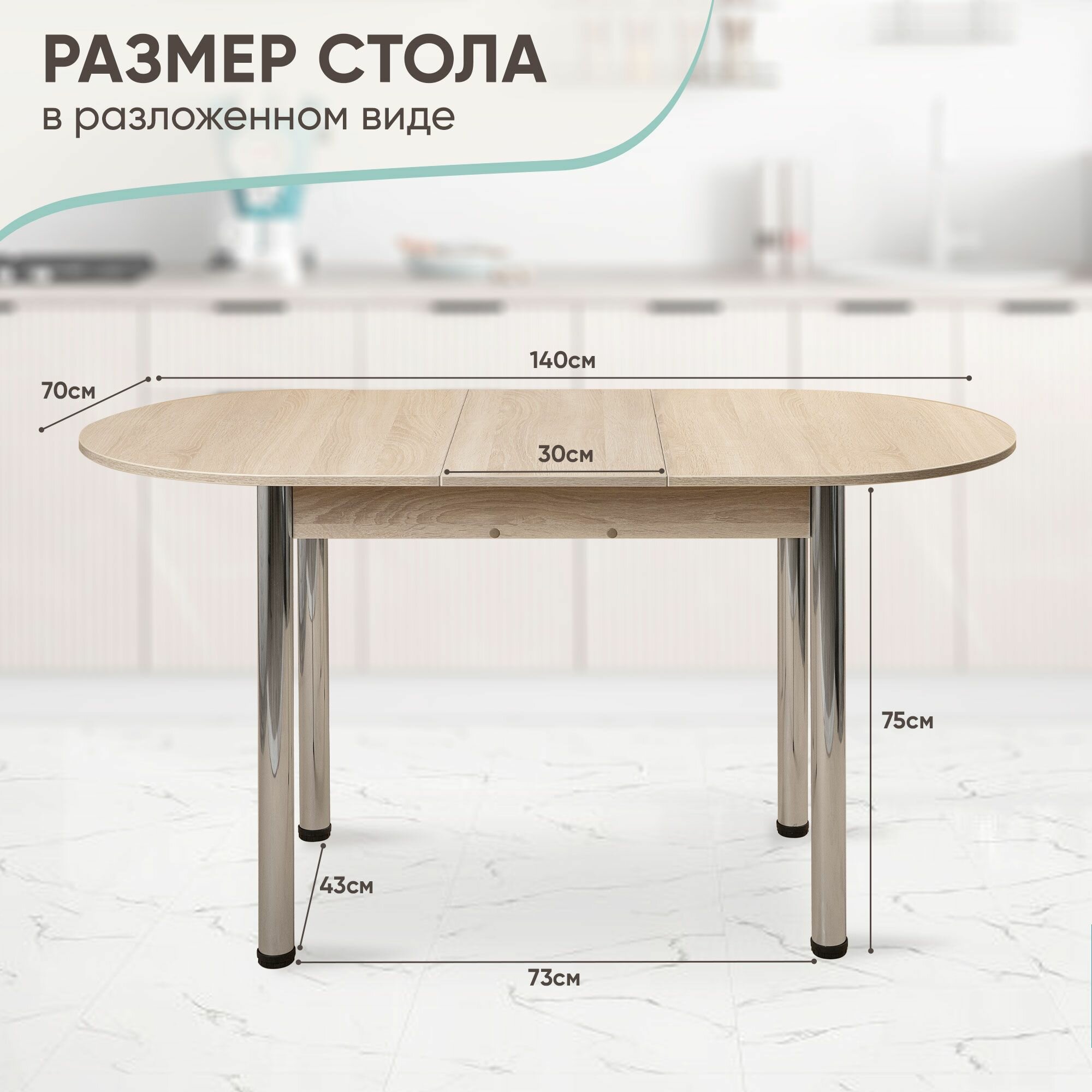Стол кухонный раздвижной Овальный, Сабия 110-140х70х75 см