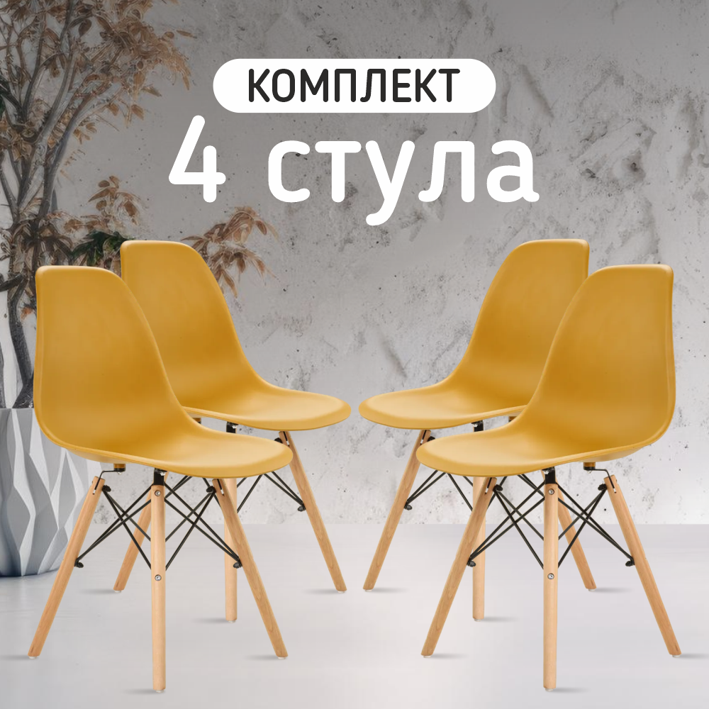 Купить Стул со спинкой горчичный для кухни, дачи, сада, офиса, гостиной, спальни, лоджии. Комплект мебели пластиковый (набор из 4 штук), стильный и практичный