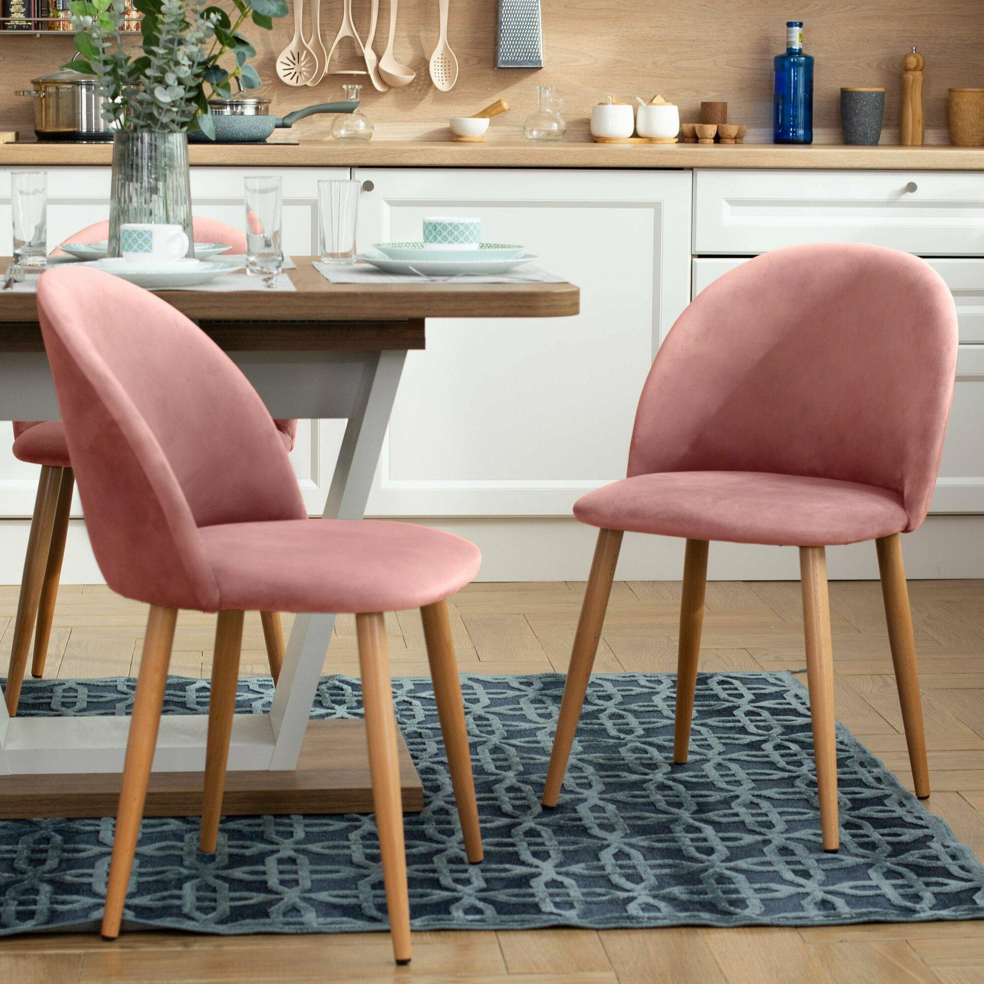 Стул Гринвич комплект 2 шт розовый велюр кухонный мягкий со спинкой для дома, для кухни, для гостиной, для спальни, DOBROV, Россия