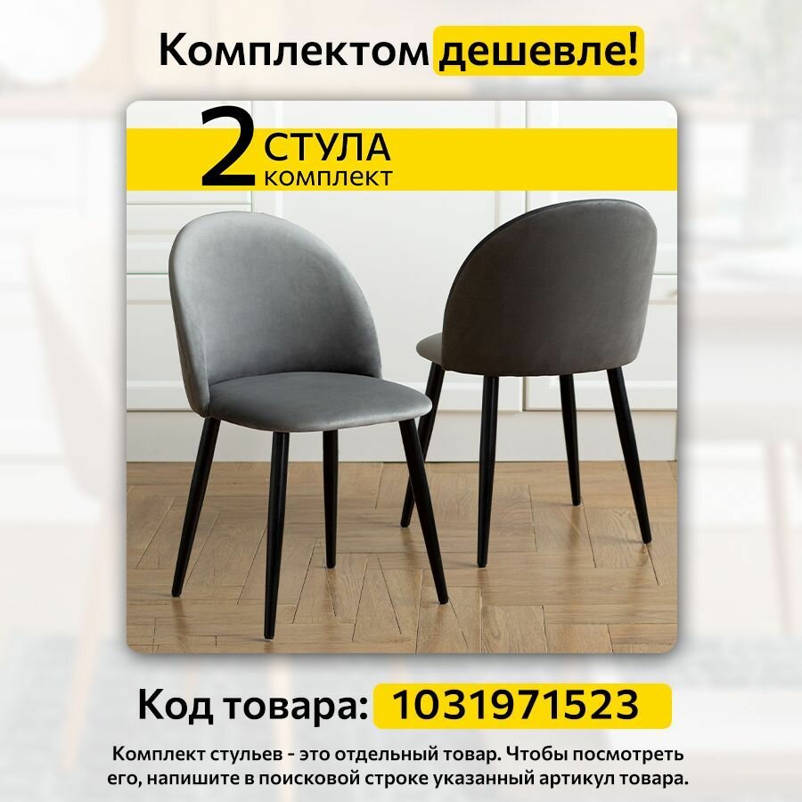 Стул Гринвич комплект 2 шт серый велюр кухонный мягкий со спинкой для дома, для кухни, для гостиной, для спальни, DOBROV, Россия