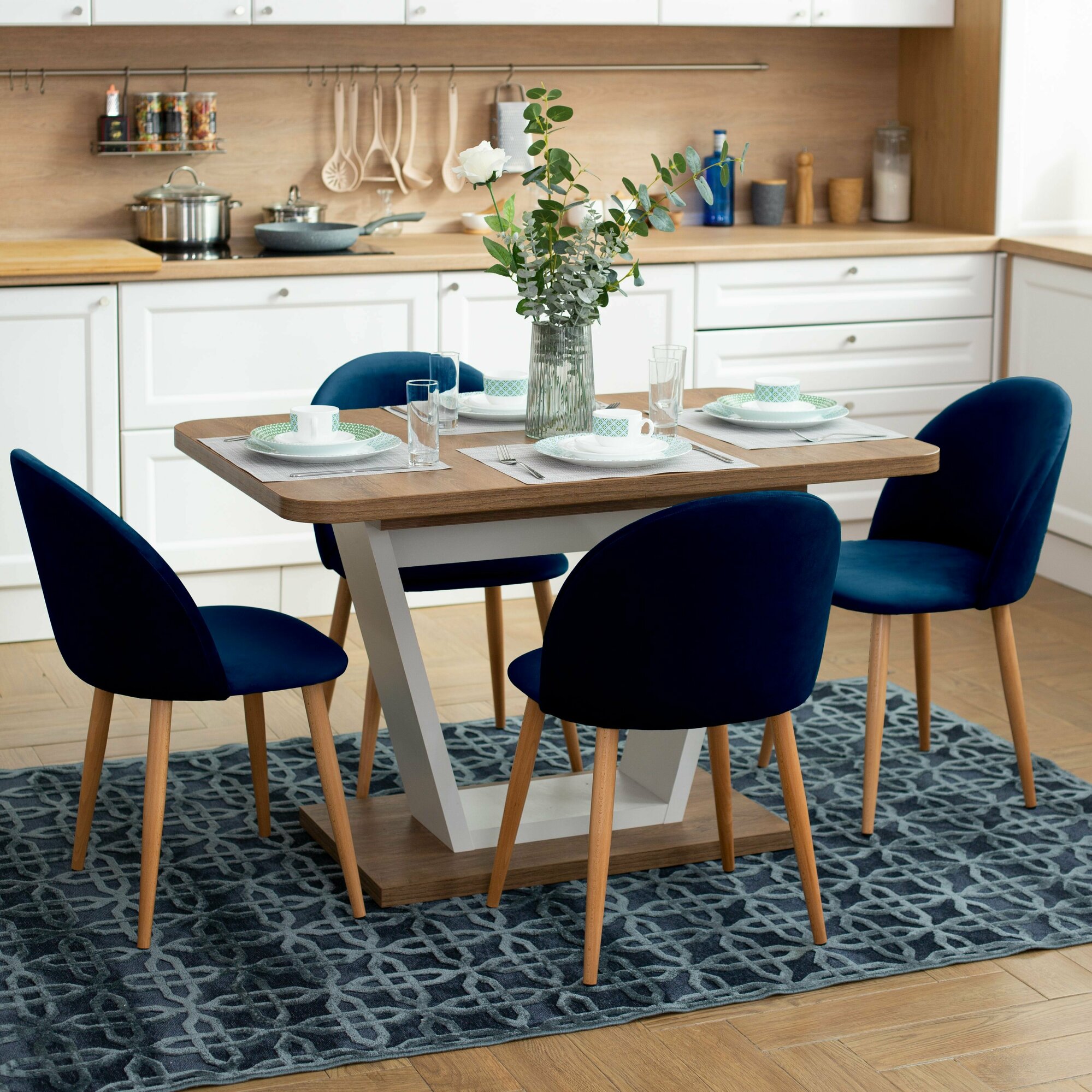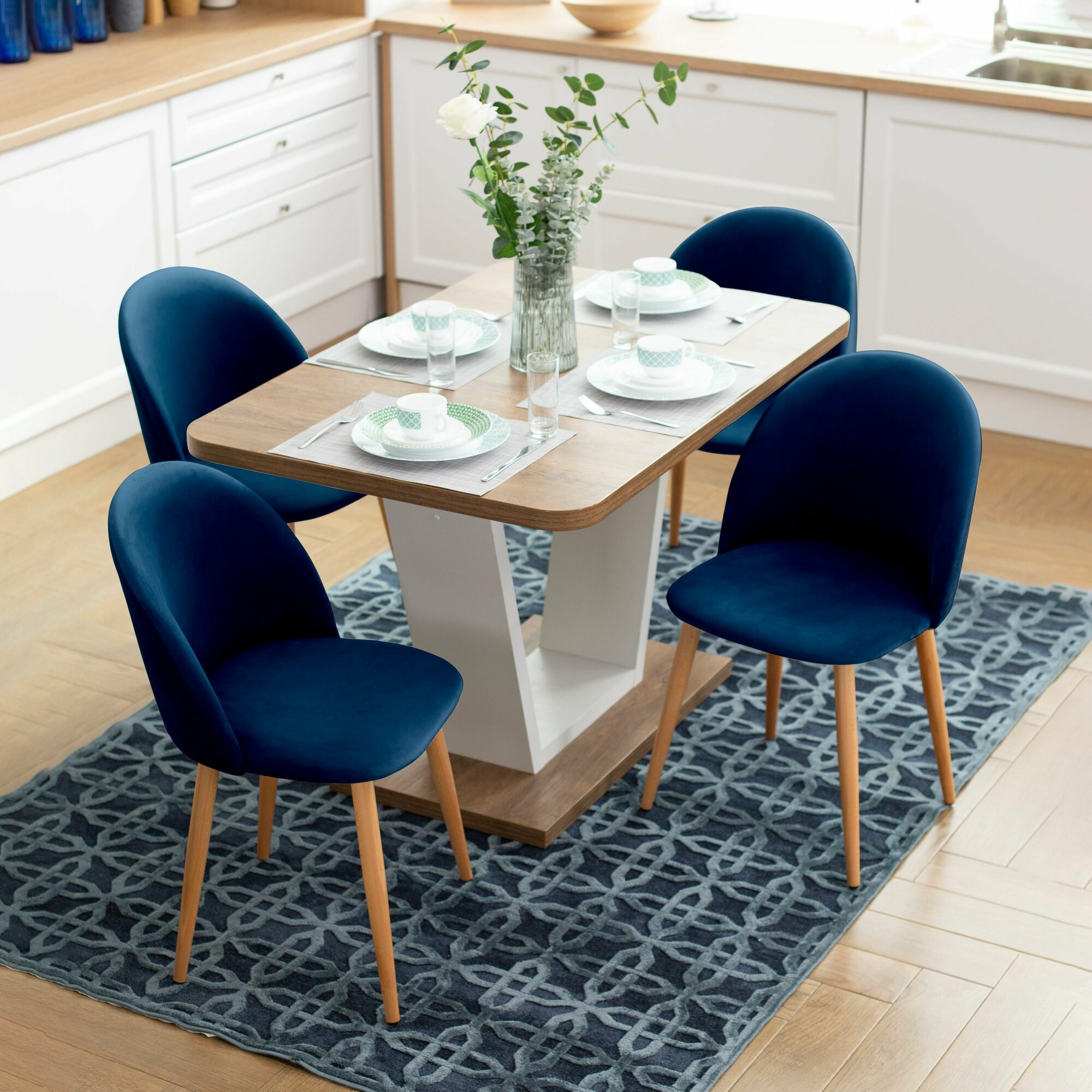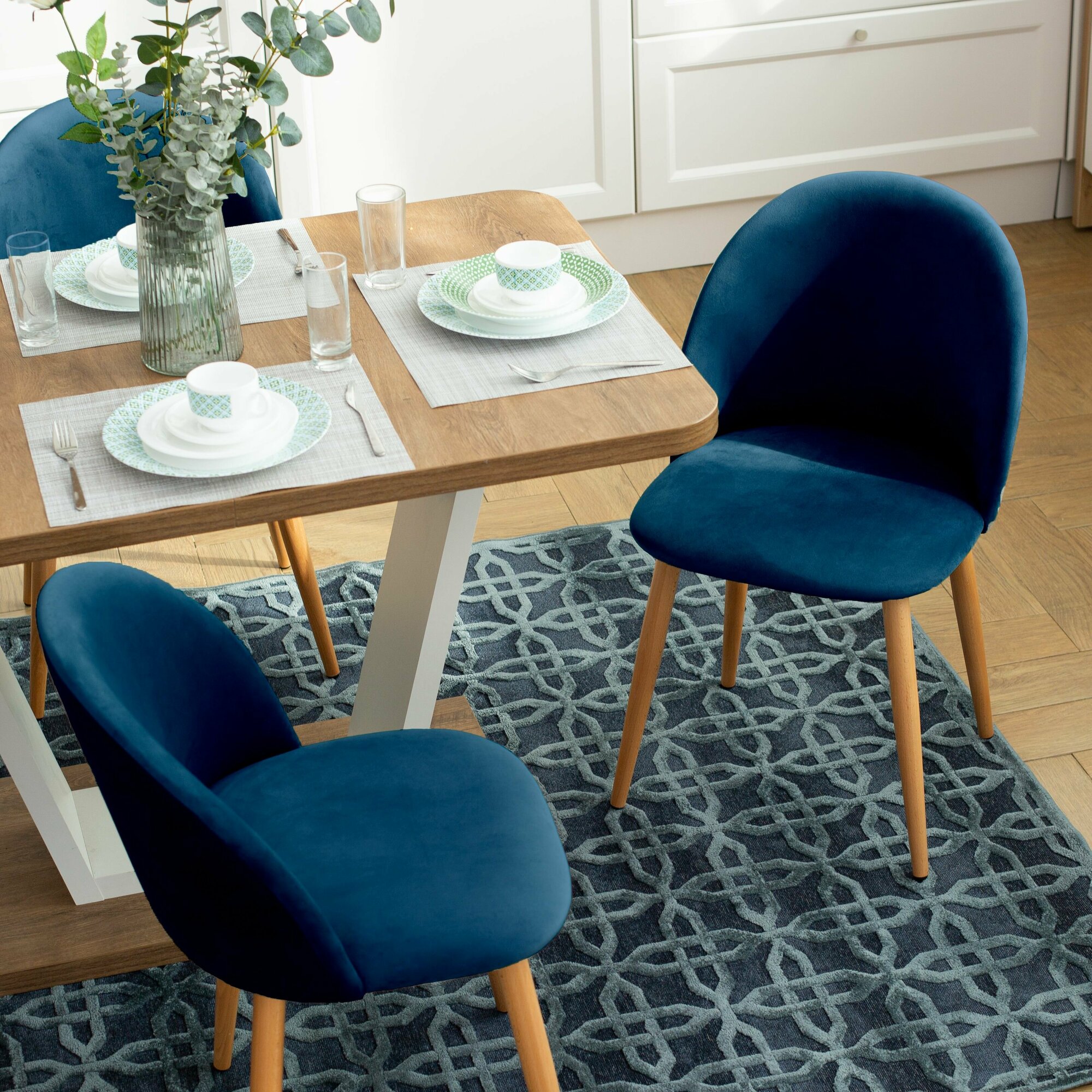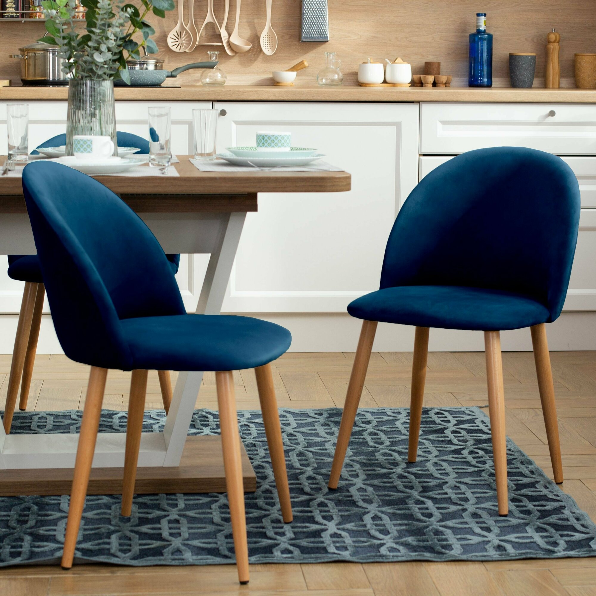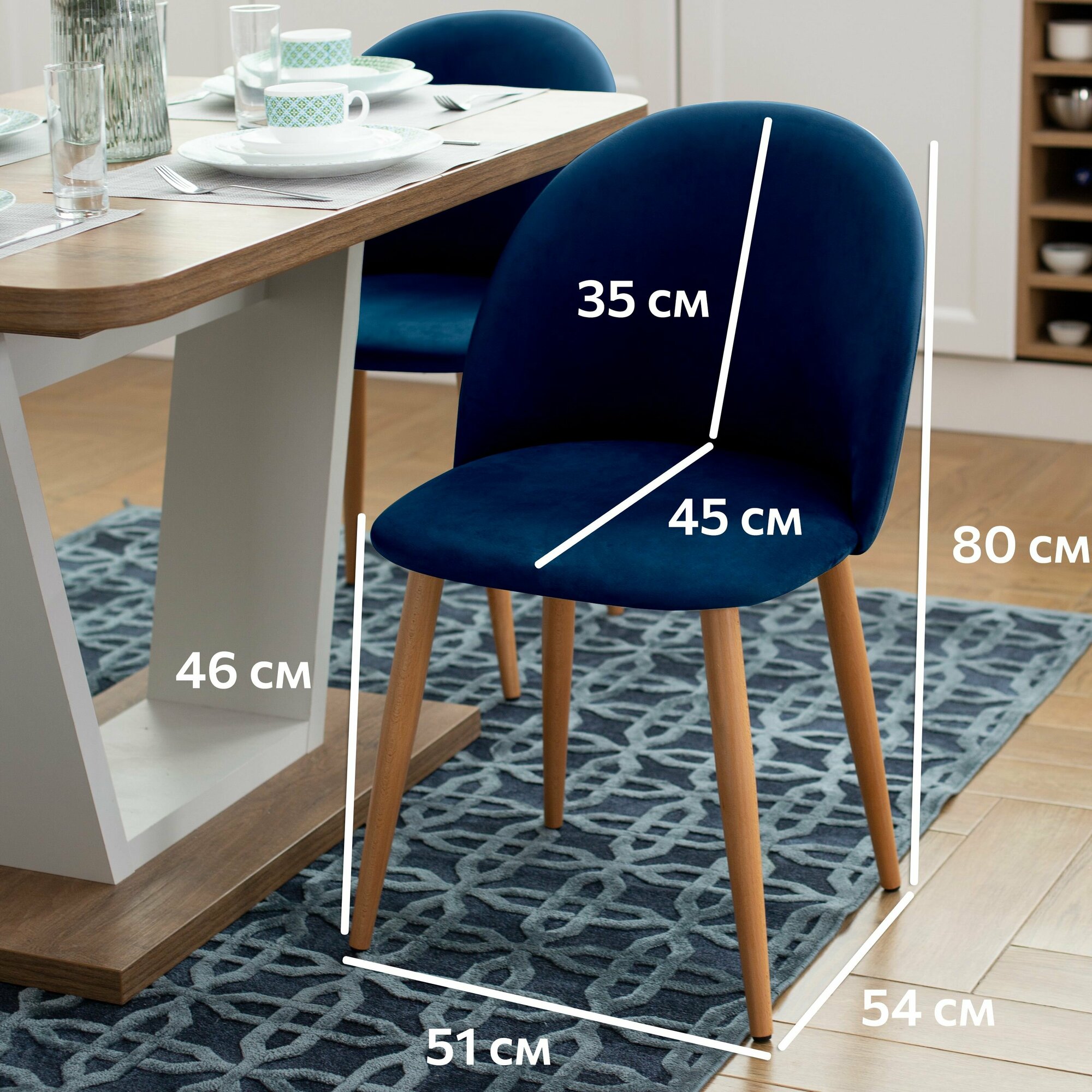 Стул Гринвич комплект 2 шт синий велюр кухонный мягкий со спинкой для дома, для кухни, для гостиной, для спальни, DOBROV, Россия