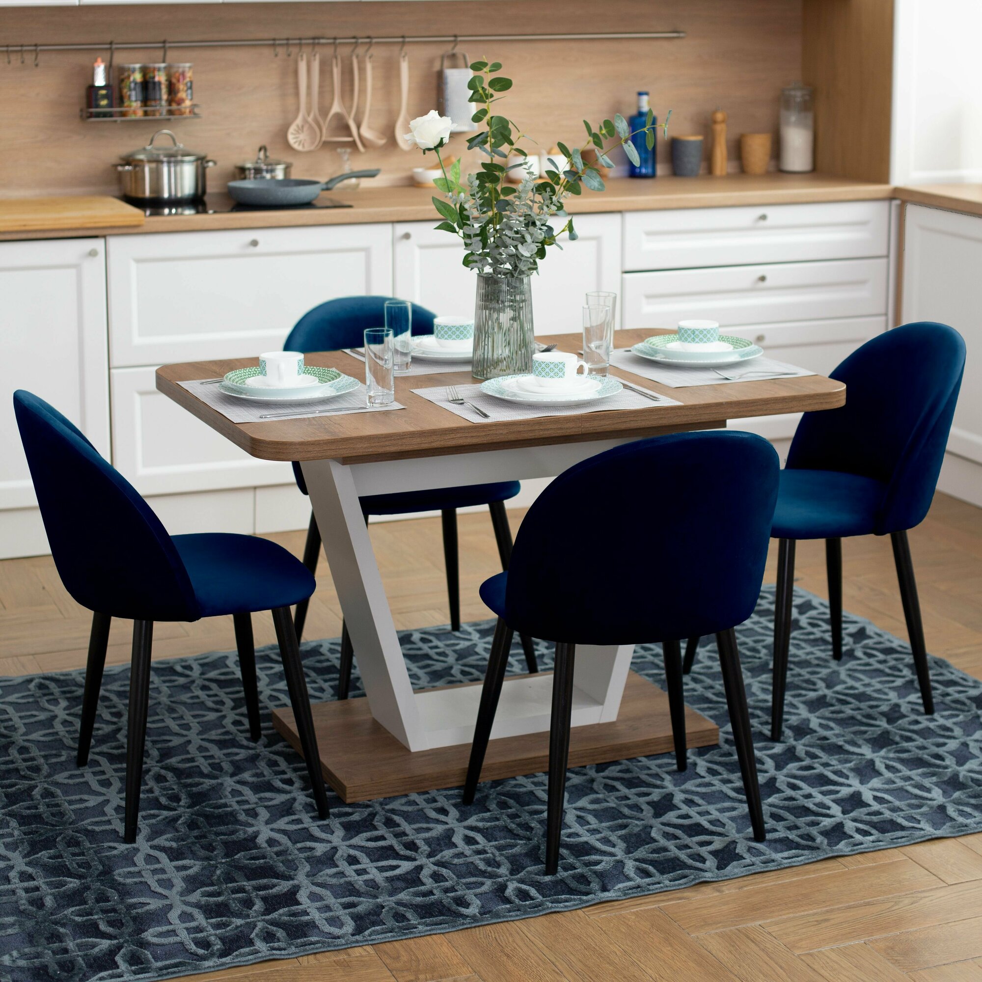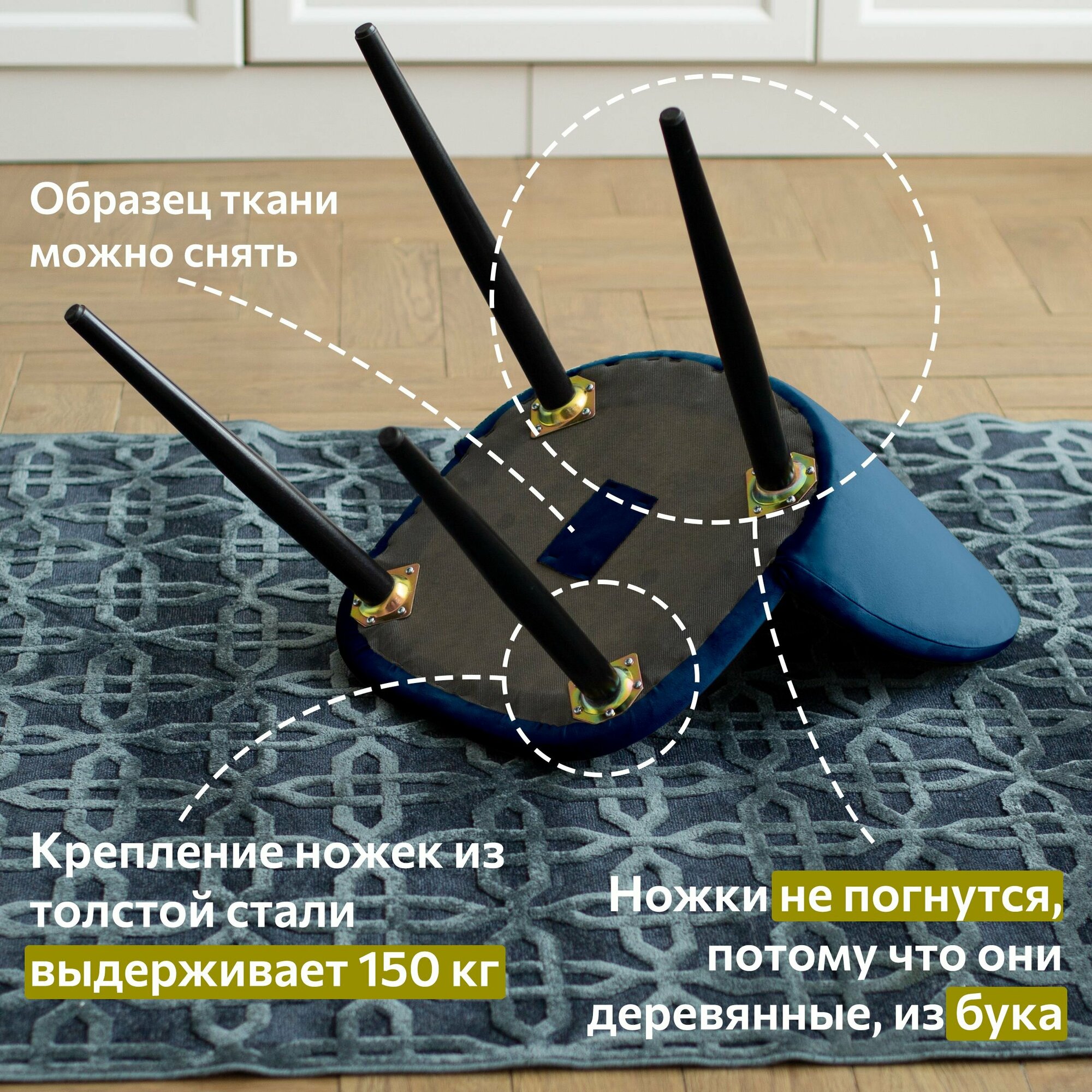 Стул Гринвич синий велюр кухонный мягкий со спинкой для дома, для кухни, для гостиной, для спальни, DOBROV, Россия