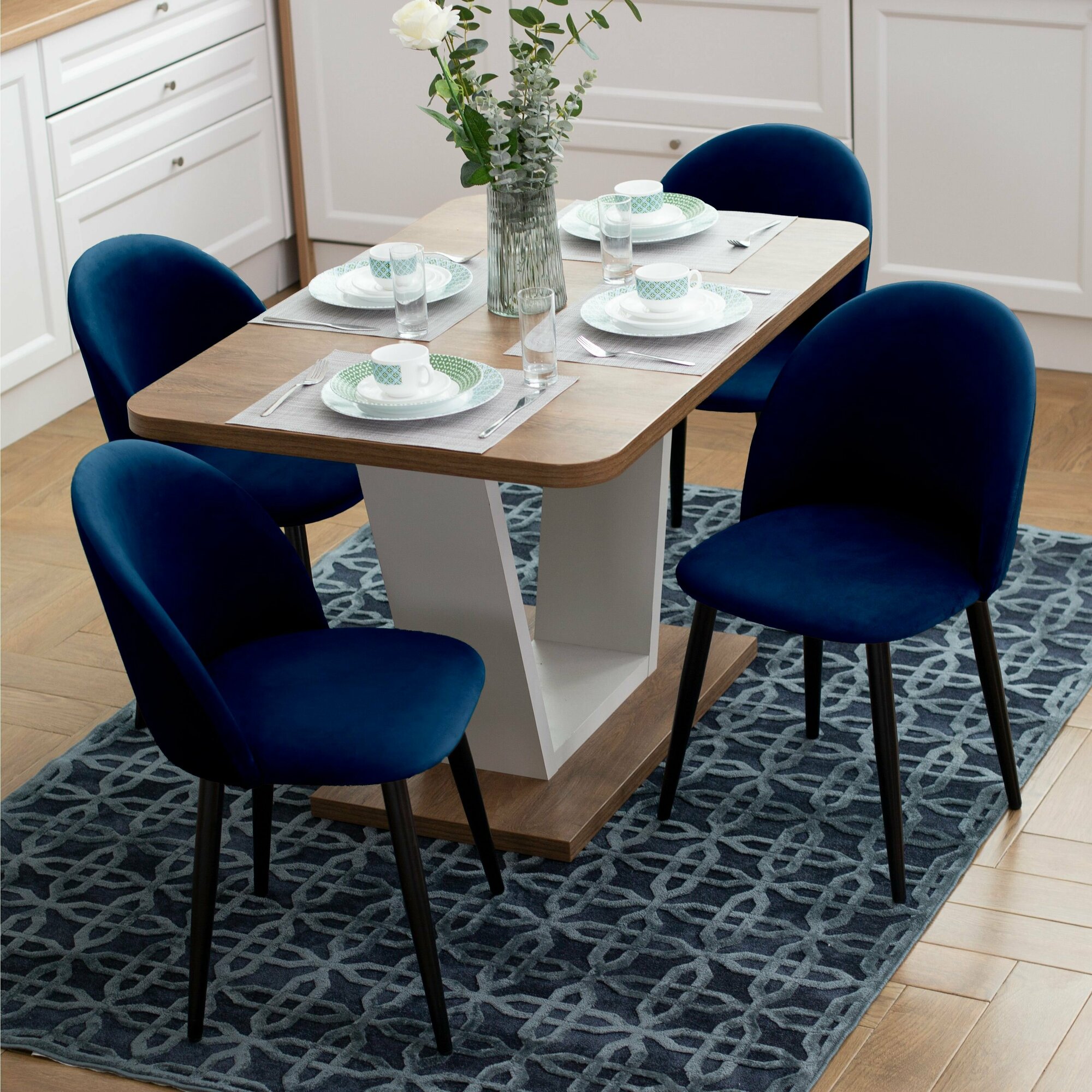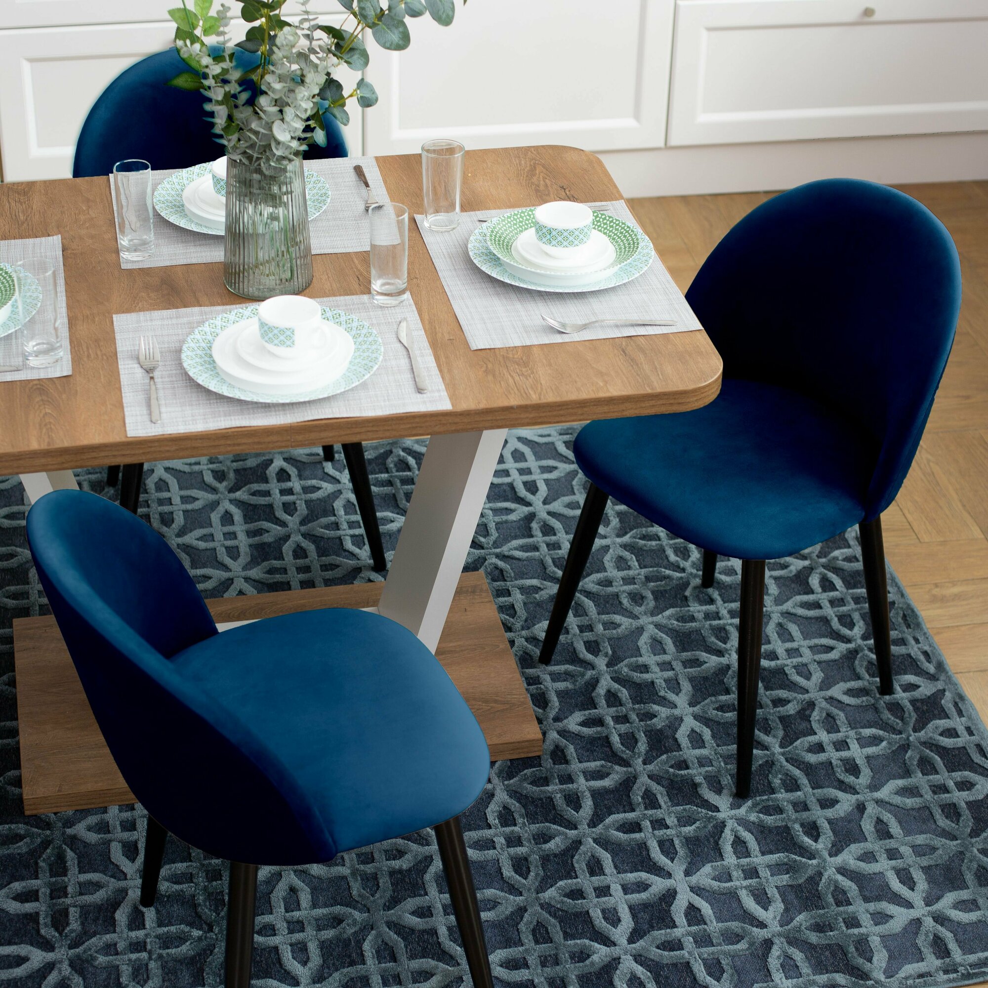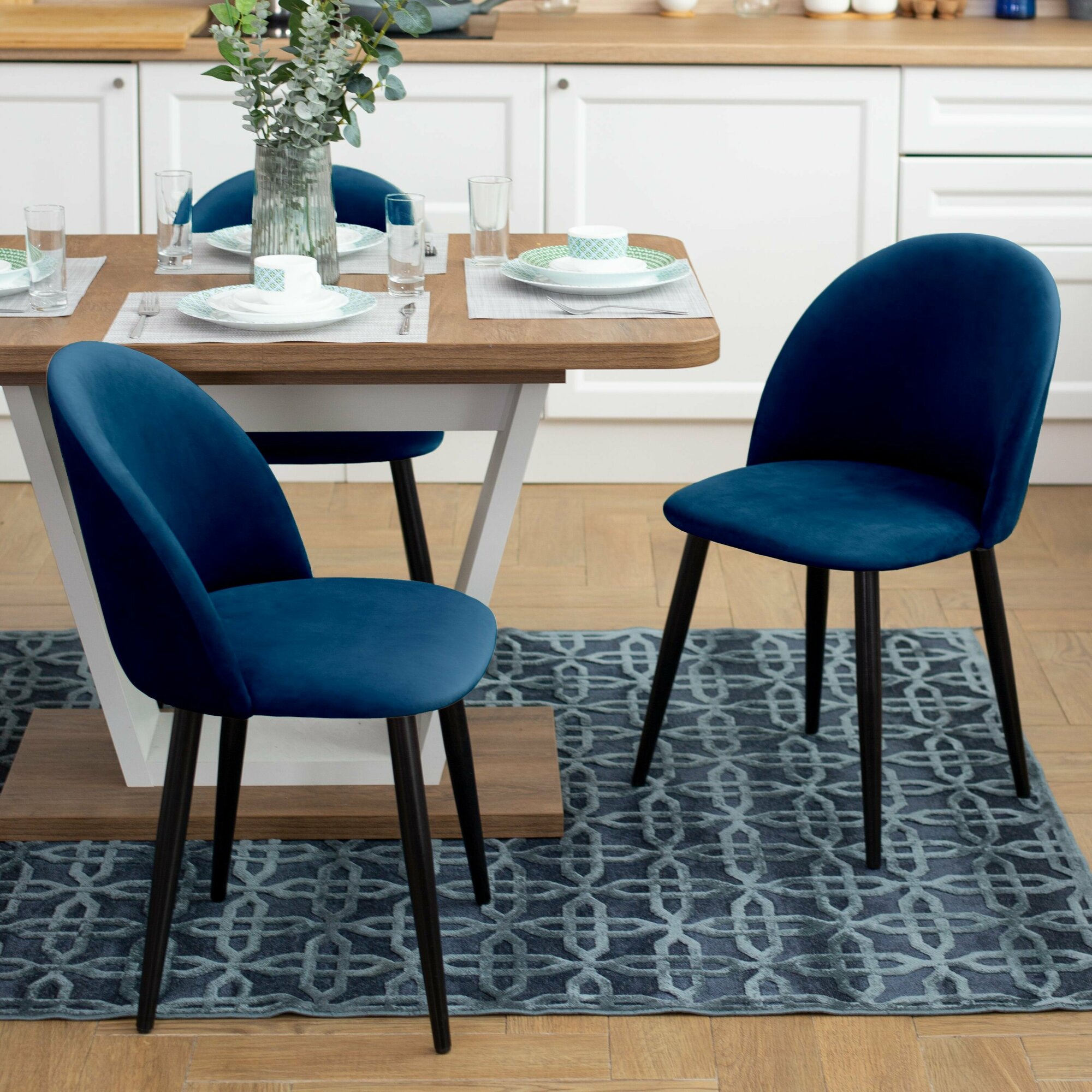 Купить Стул Гринвич комплект 2 шт синий велюр кухонный мягкий со спинкой для дома, для кухни, для гостиной, для спальни, DOBROV, Россия