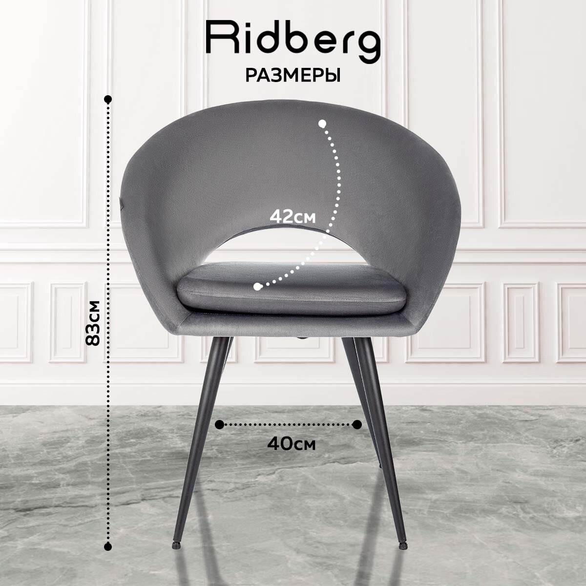 СохранитьСтул для кухни Ridberg Dakline (велюр, серый), столовой, гостиной, офисный, компьютерный, кухонный, со спинкой, на ножках, мягкий, 1 шт. интересное: