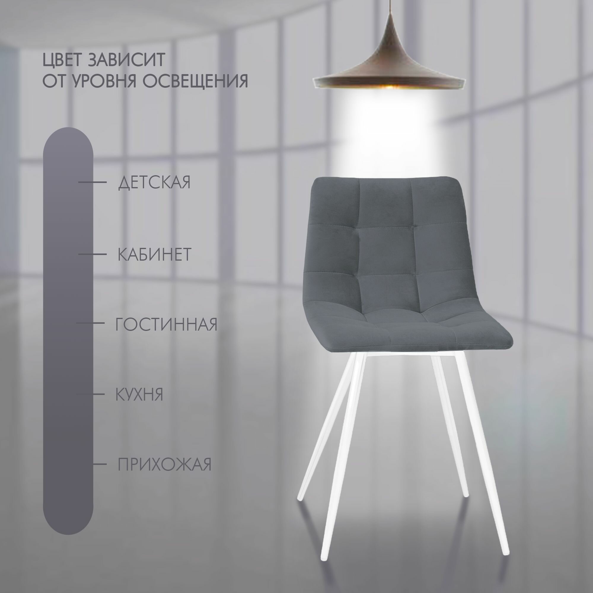 Купить Стул для кухни Nordix Pixel, мягкий велюр, серый, белые опоры 1шт