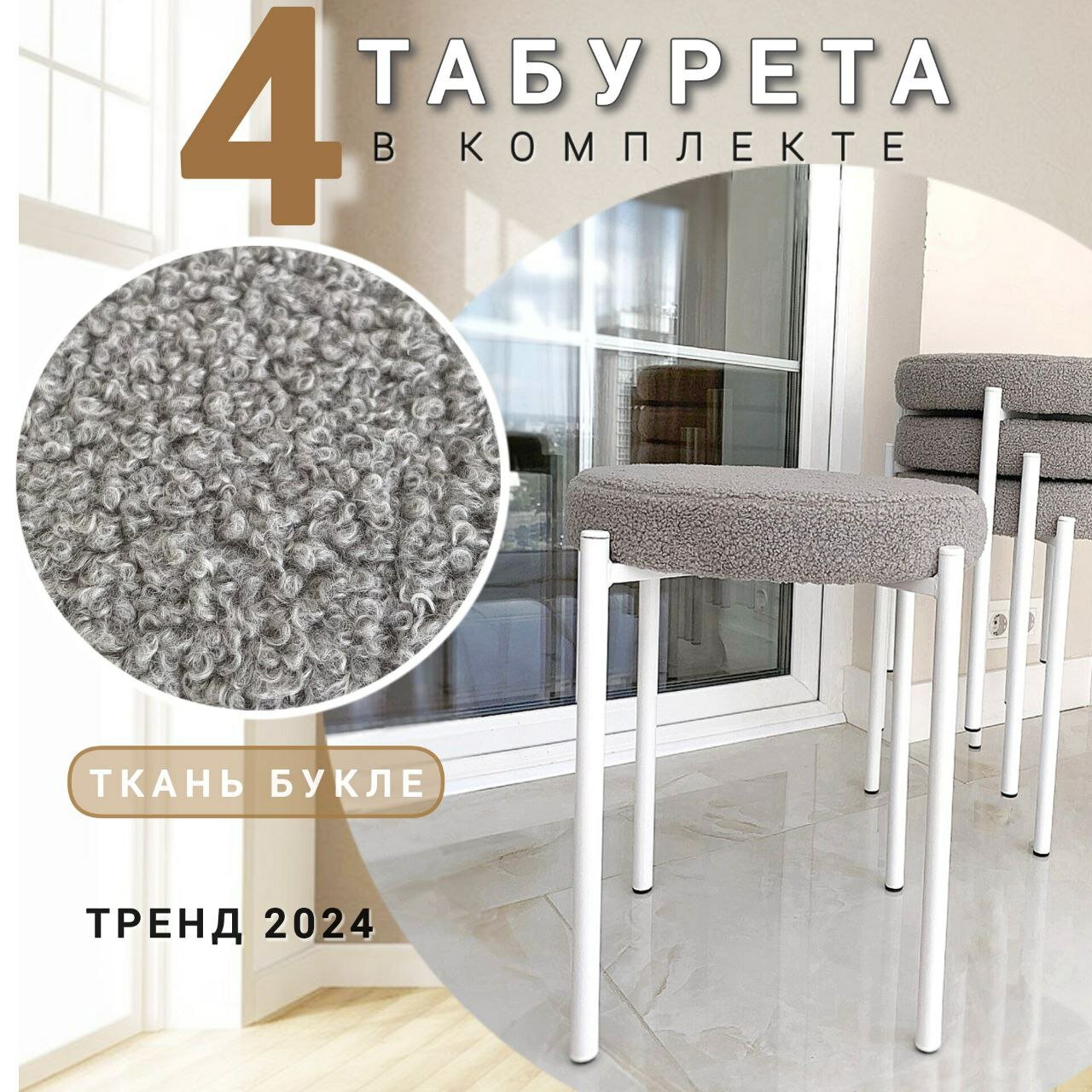 Msk Мебель Табуретки для кухни, букле серые
