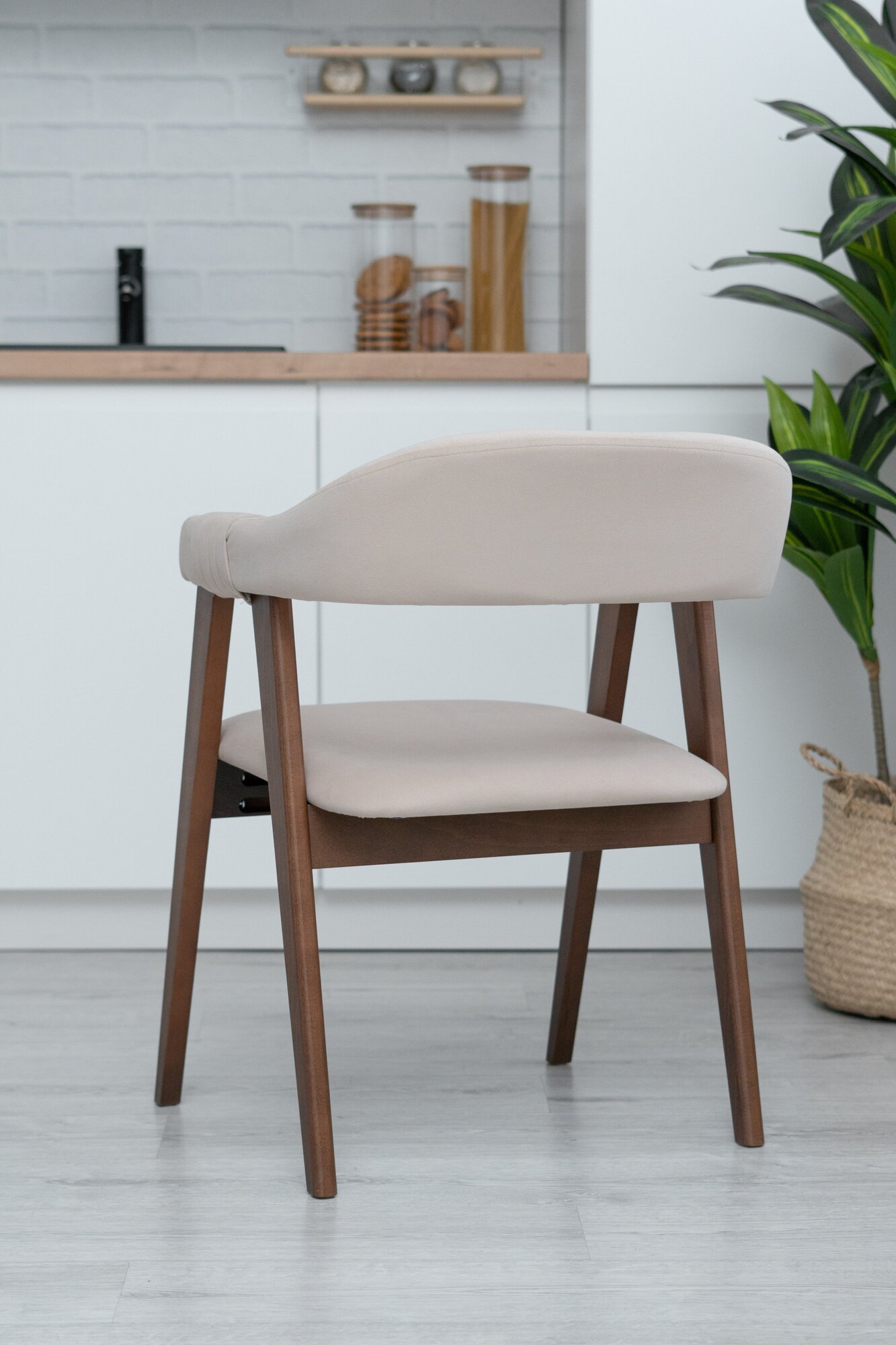 Деревянный стул Drezden со спинкой, обивка - бежевый велюр, каркас - старинный орех, для дома, дачи, кухни, гостиной и письменного стола интересное: