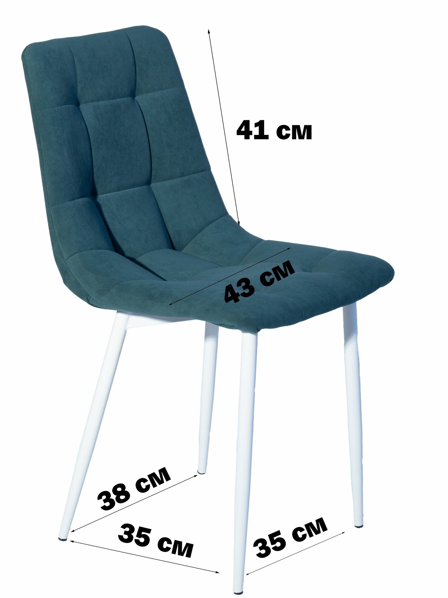 Стул мягкий для кухни, комплект из 2 кухонных стульев чили, велюр, синие, белые ножки