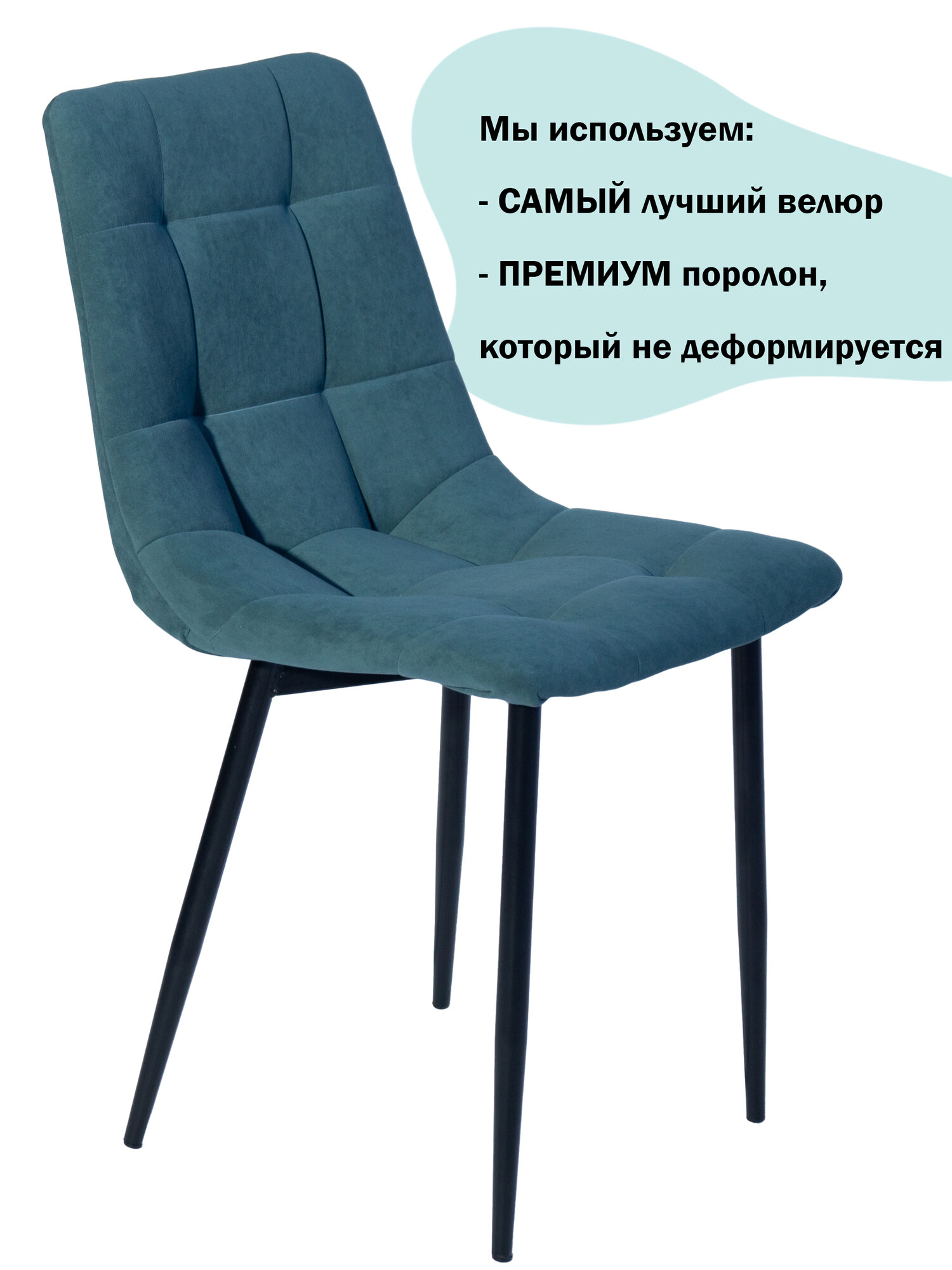 Стул мягкий для кухни, комплект из 3 кухонных стульев чили, велюр, синие, черные ножки