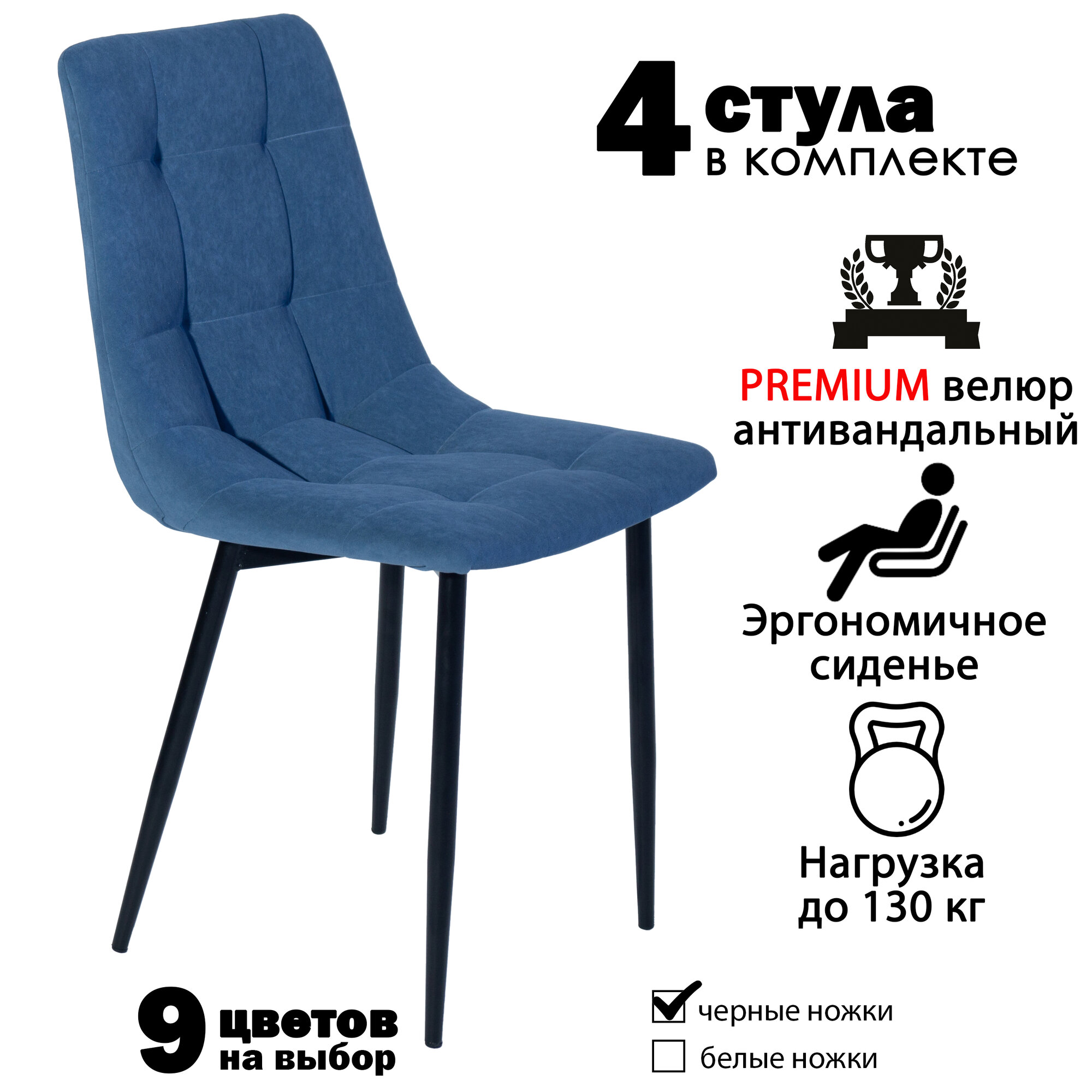 Ниже Вы можете прочитать отзывы на Стул мягкий для кухни, комплект из 4 кухонных стульев чили, велюр, синие, черные ножки, ознакомится с подробными характеристиками, посмотреть интересные обзоры и фотографии на Стул мягкий для кухни, комплект из 4 кухонных стульев чили, велюр, синие, черные ножки.