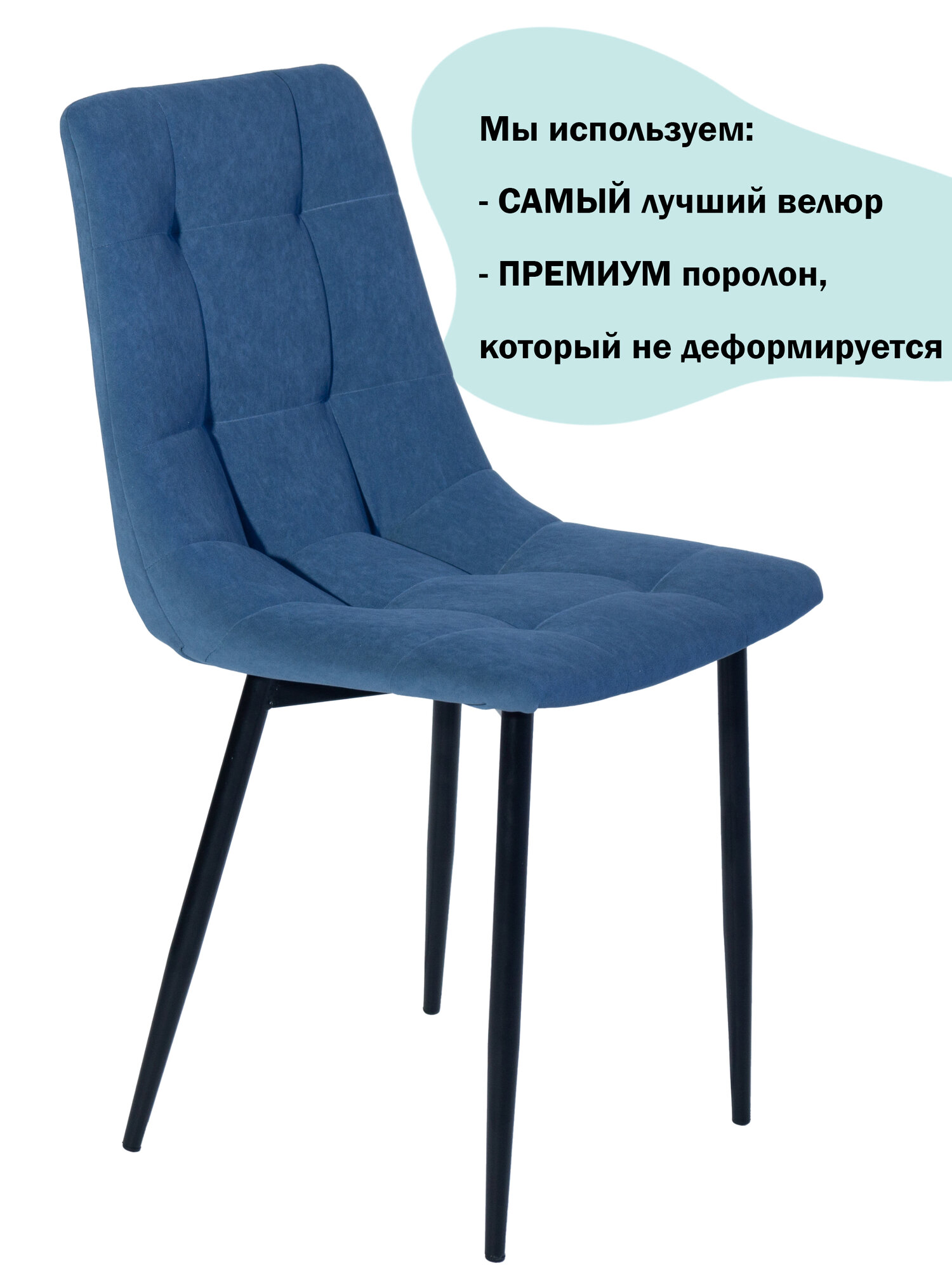 СохранитьСтул мягкий для кухни, комплект из 4 кухонных стульев чили, велюр, синие, черные ножки интересное: