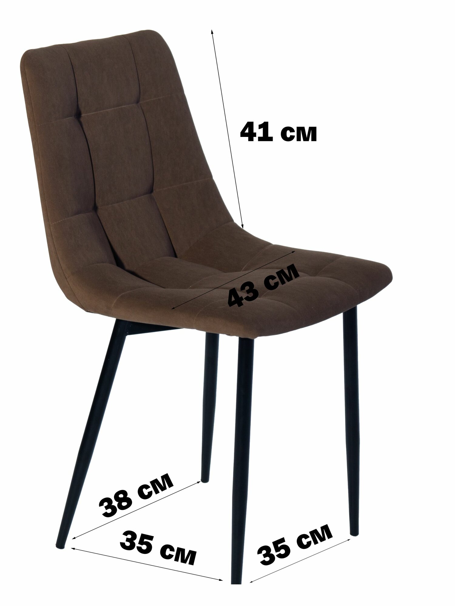 Стул мягкий для кухни, комплект из 2 кухонных стульев чили, велюр, коричневые, черные ножки