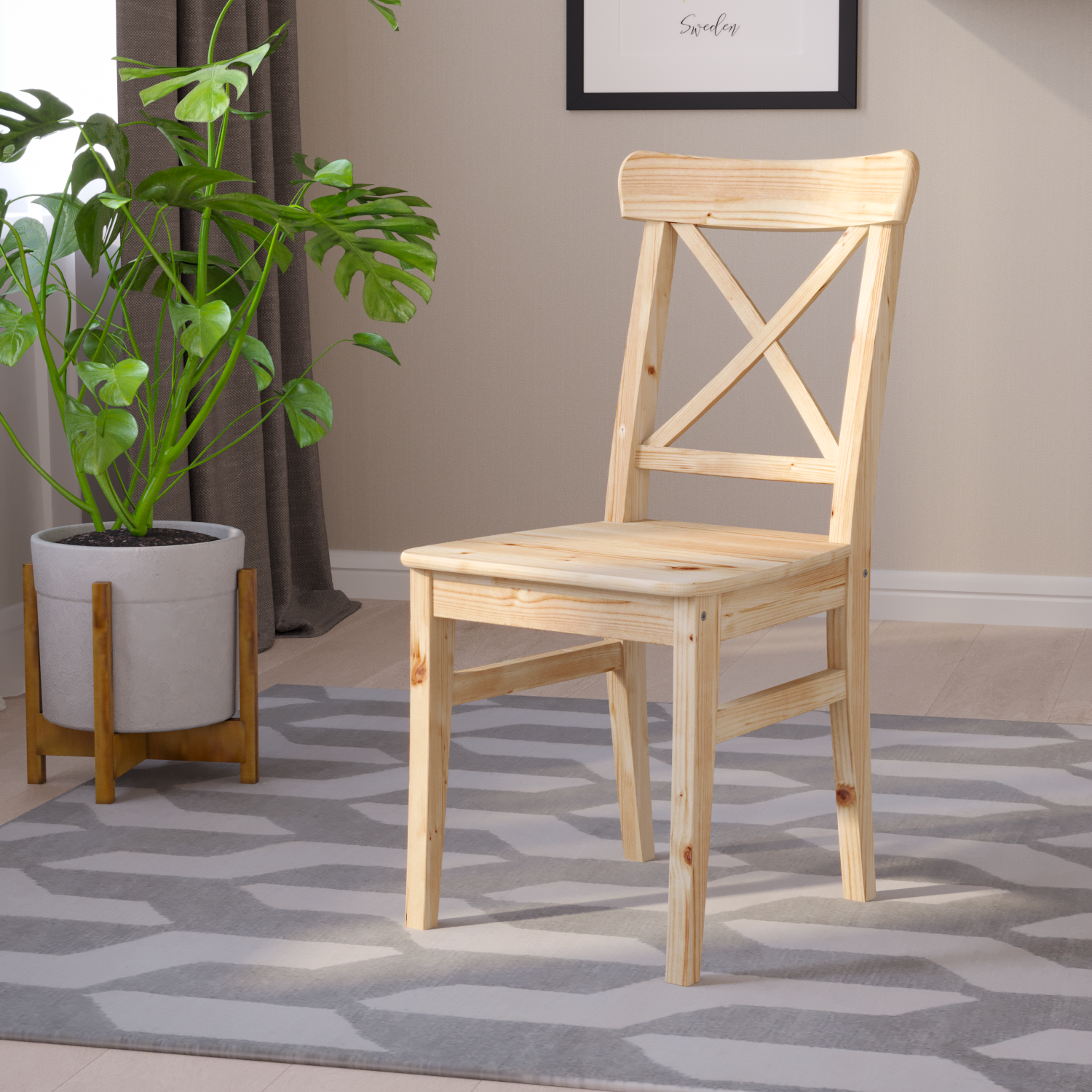 Стул INGOLF из массива берёзы, холодный белый тон 7 + коричневый тон 24 / сиденье сосна