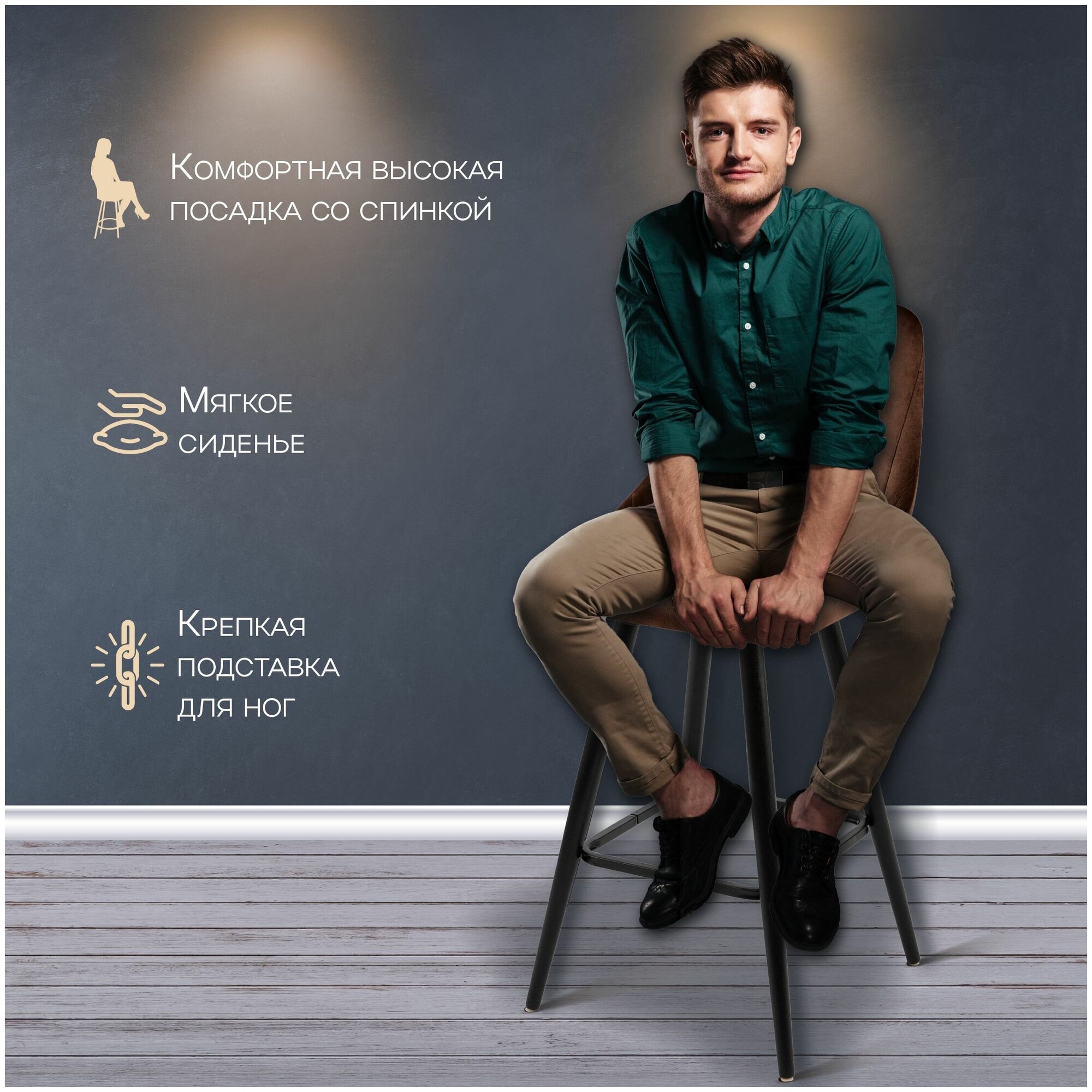 Барные стулья для кухни 2 штуки мягкие Лондон, обеденная группа, для дома, гостиной, кухонные стулья со спинкой, высокие ножки, обивка вельвет коричневый, АМИ мебель, Беларусь