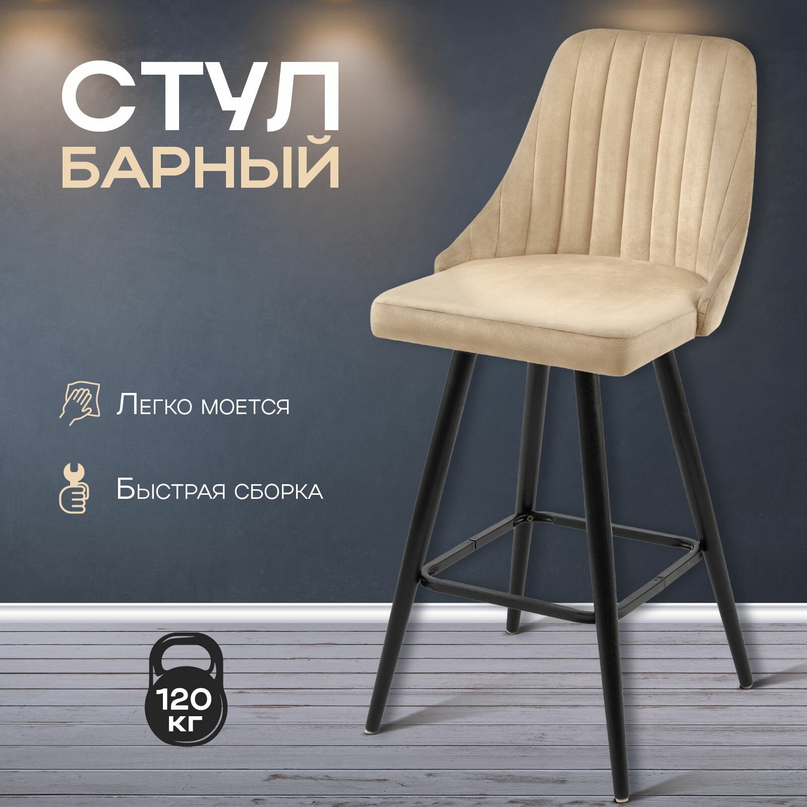 СохранитьБарный стул со спинкой Лондон, ножки деревянные высокие, мягкий, обеденный для кухни, гостиной, для дома, обивка вельвет бежевый, АМИ мебель, Беларусь интересное: