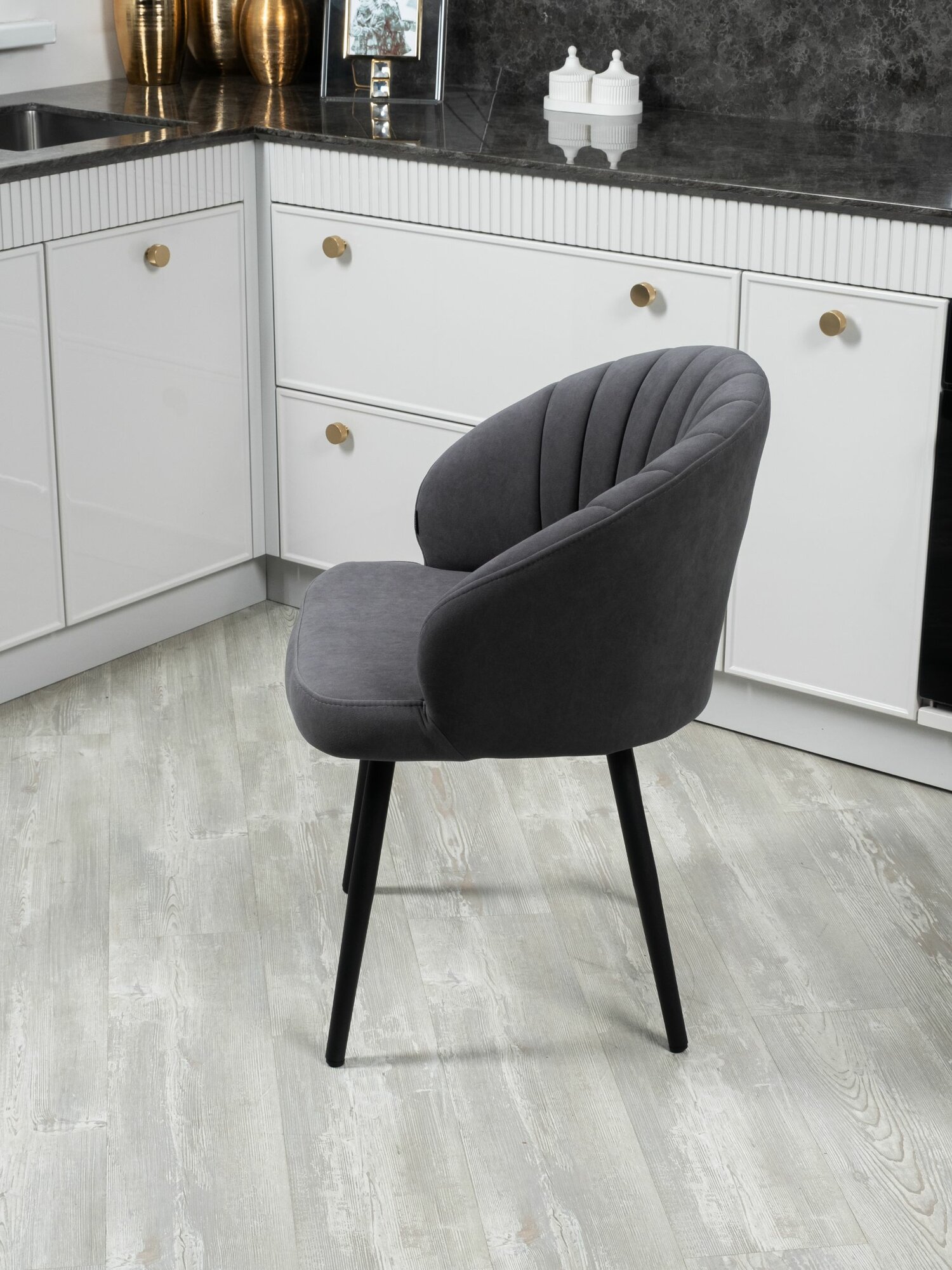 Комплект стульев "Зефир" для кухни темно-серый с золотыми ногами, стулья кухонные 2 штуки