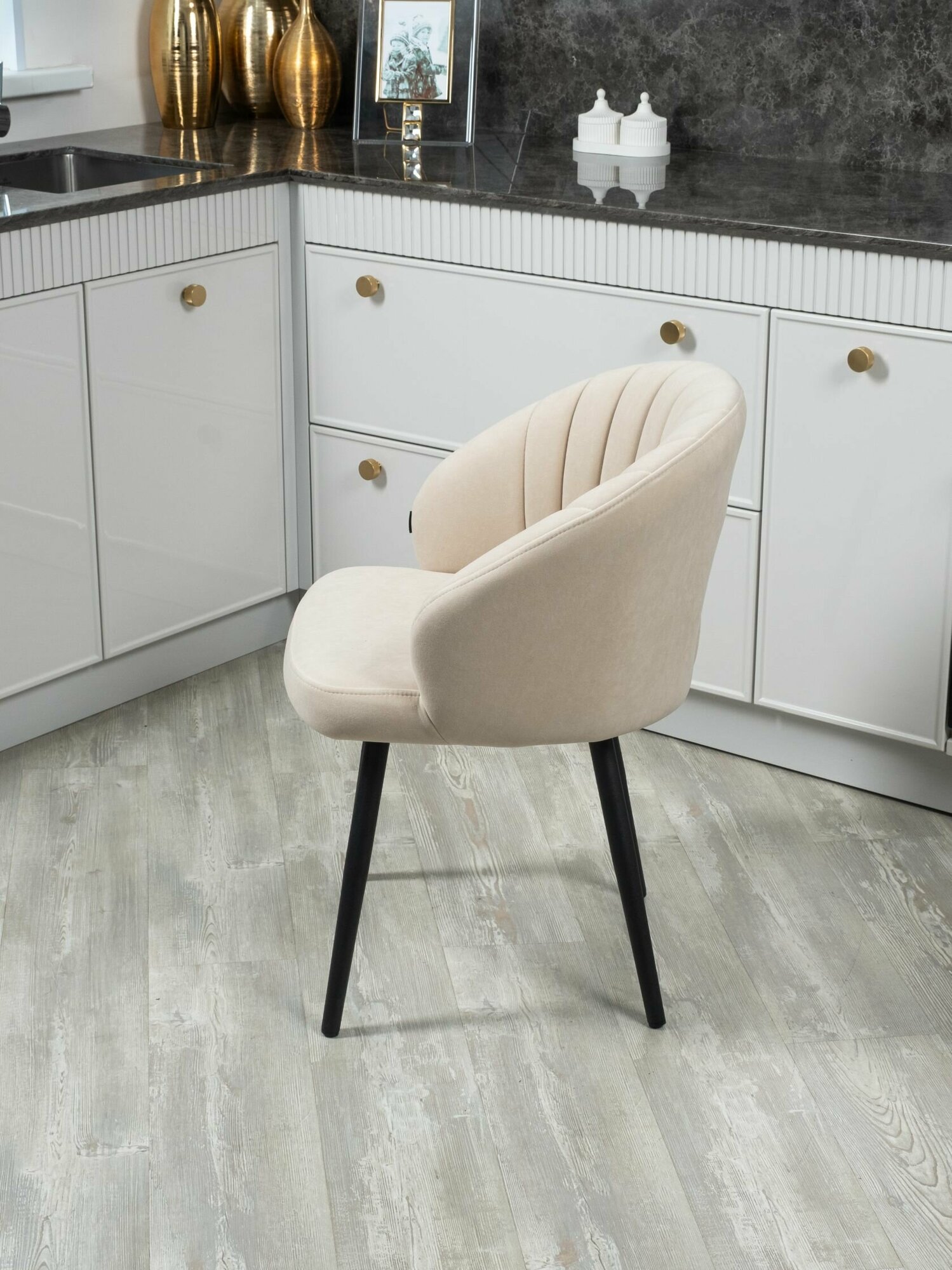 Комплект стульев "Зефир" для кухни кремовый / золотые ноги, стулья кухонные 2 штуки