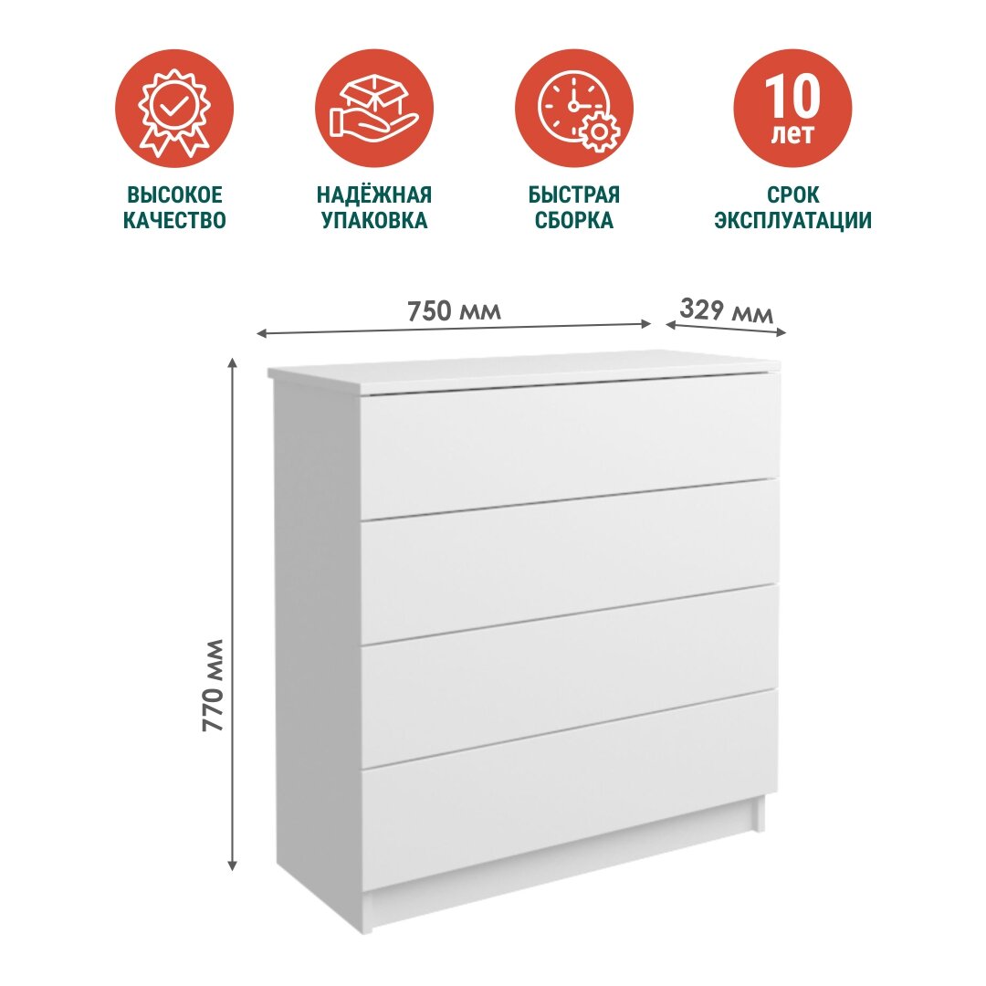 Комод "Мебель-М" для вещей, белый, 75х32,9х77см, 4 ящика интересное: