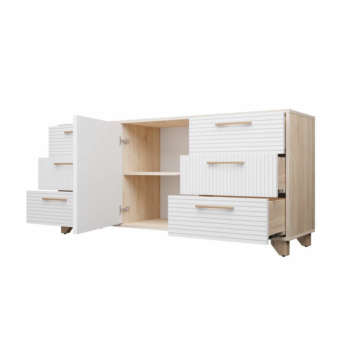 Купить Комод Копенгаген для одежды с ящиками ЛДСП Дуб сонома / МДФ Белый матовый 150х40x70