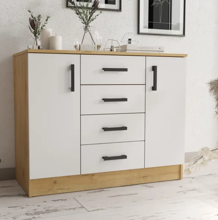 Комод столплит К1000-2Д с 4 ящиками и полками, ЛДСП, Дуб Вотан-Белый гладкий, 100х44х83 см