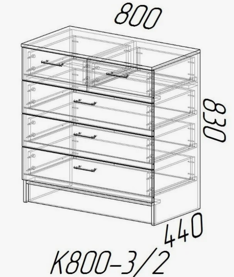 Комод К800-4ящ 4 ящ. 80х44x83 см