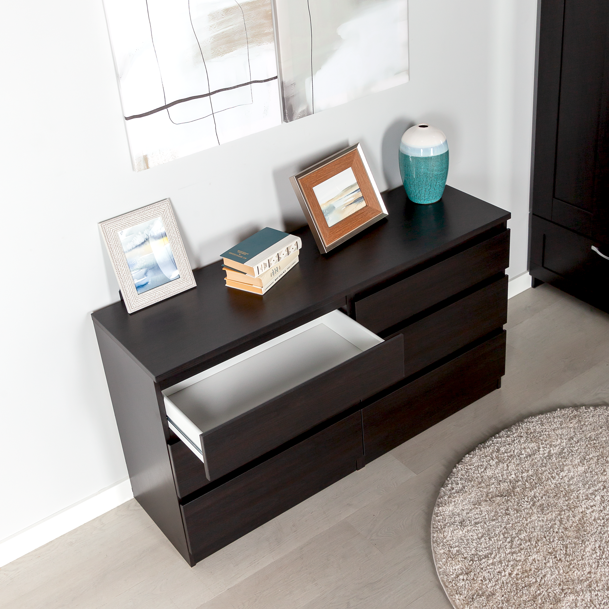 Комод ГУД ЛАКК Кастор, 6 ящиков, 129х39х71 см, черно-коричневый, дуб венге