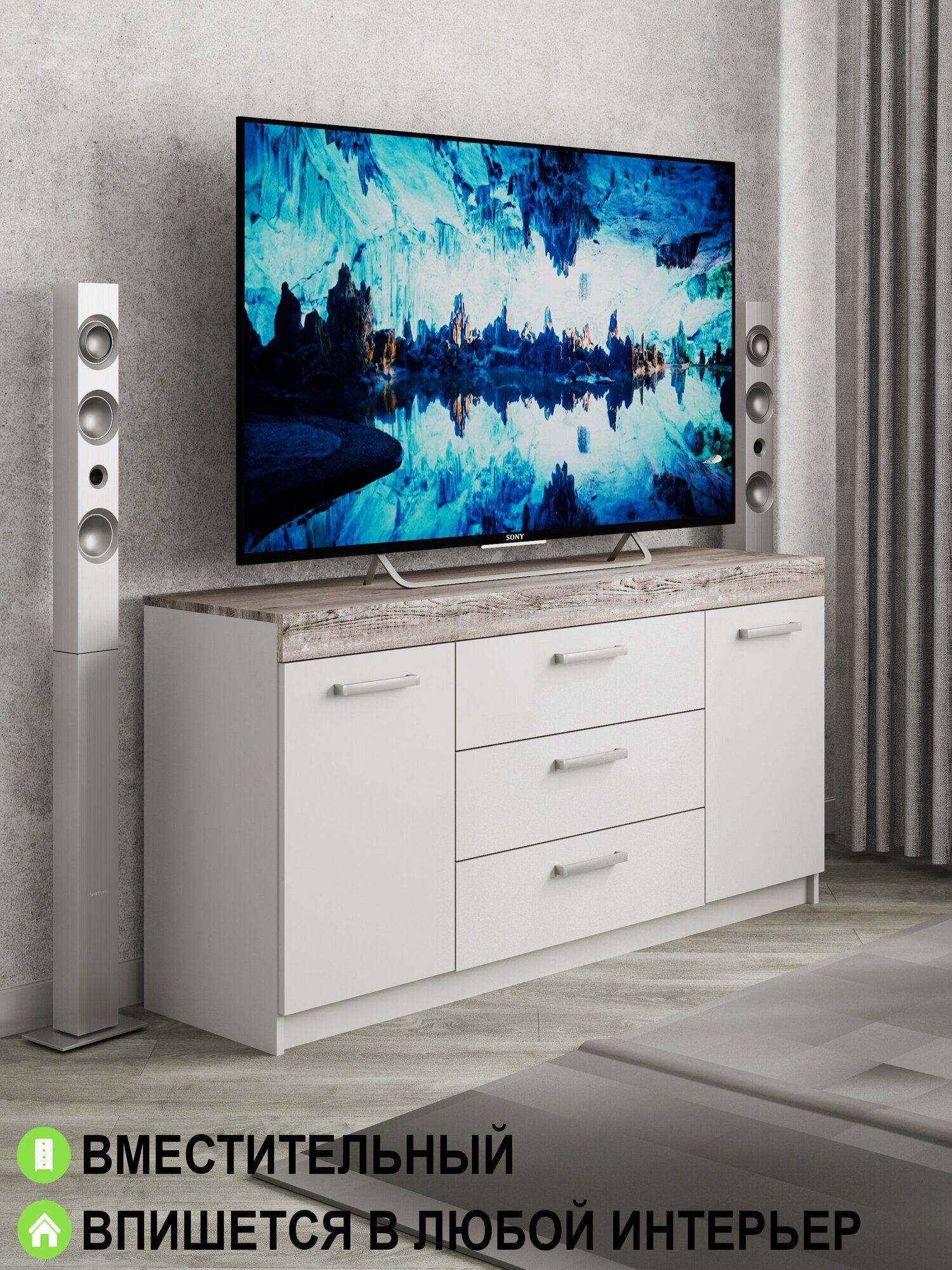 Комод "Модерн" №1-3 ящика (2 двери), В*Ш*Г (см) 75х150х40, ЛДСП, белый / сосна рокпорт