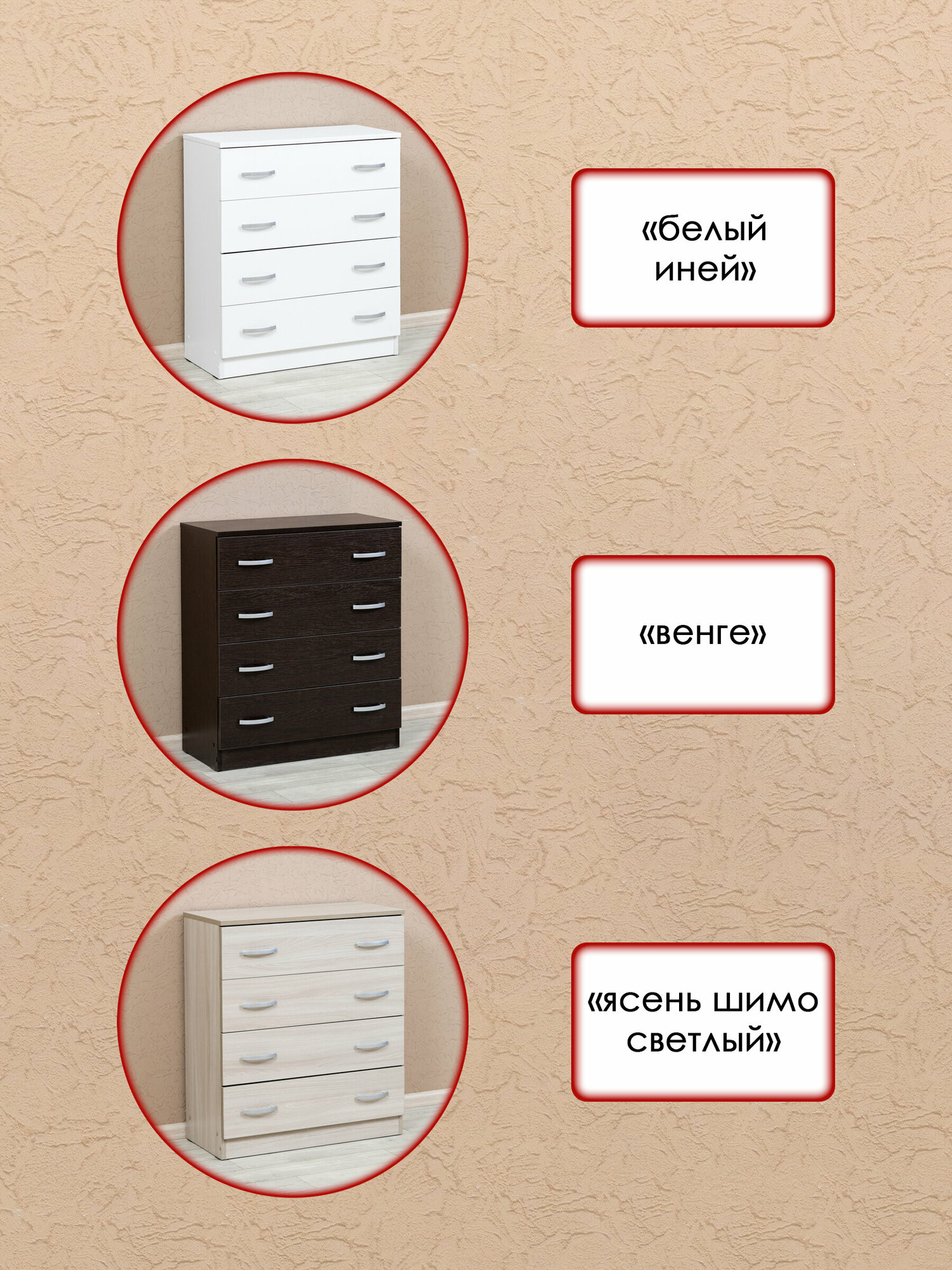 | Дополнительная информация | Комод с четырьмя ящиками с ручками |