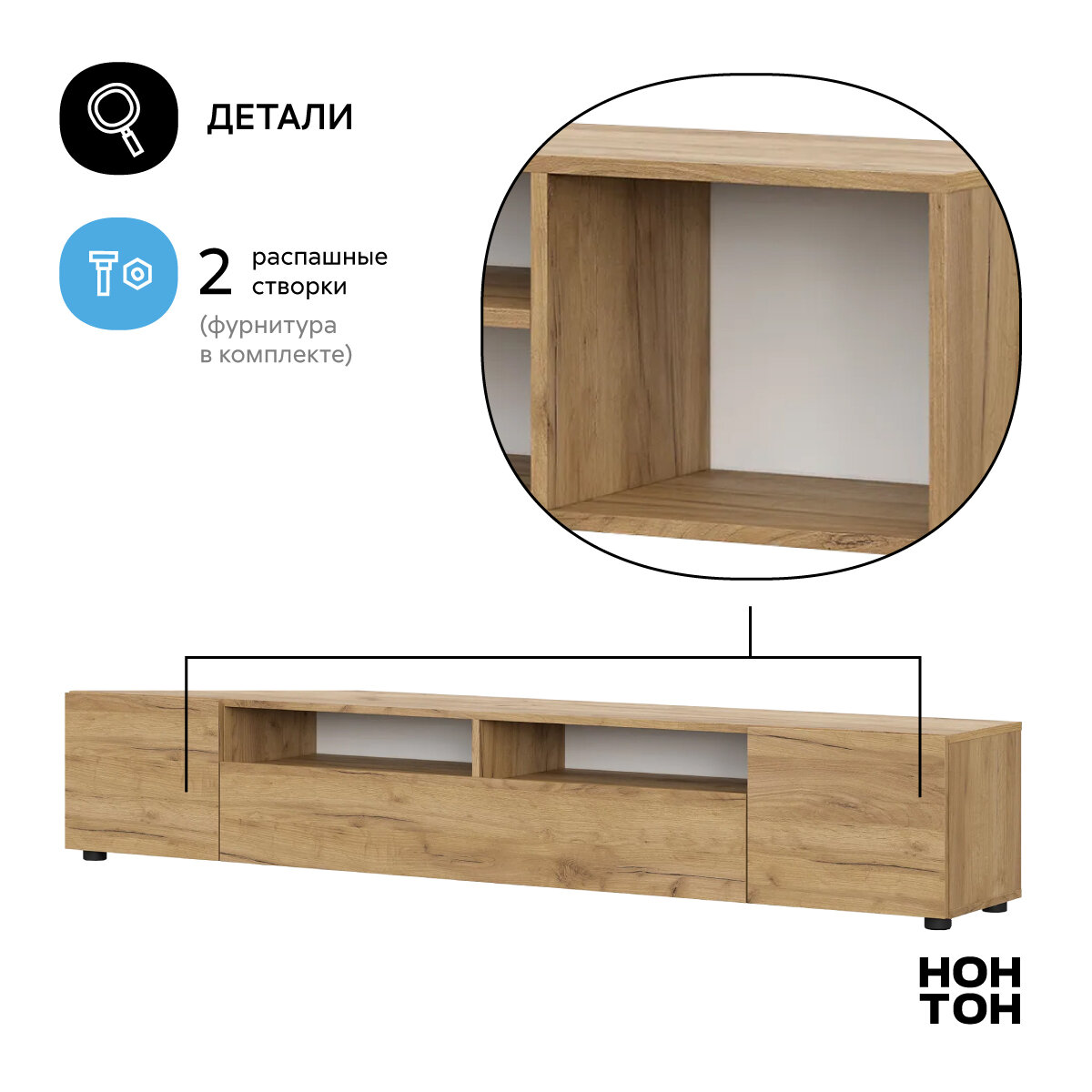 Тумба под телевизор Нонтон Грейс, дуб крафт золотой / белый, 200.1х34.6х35.5 см