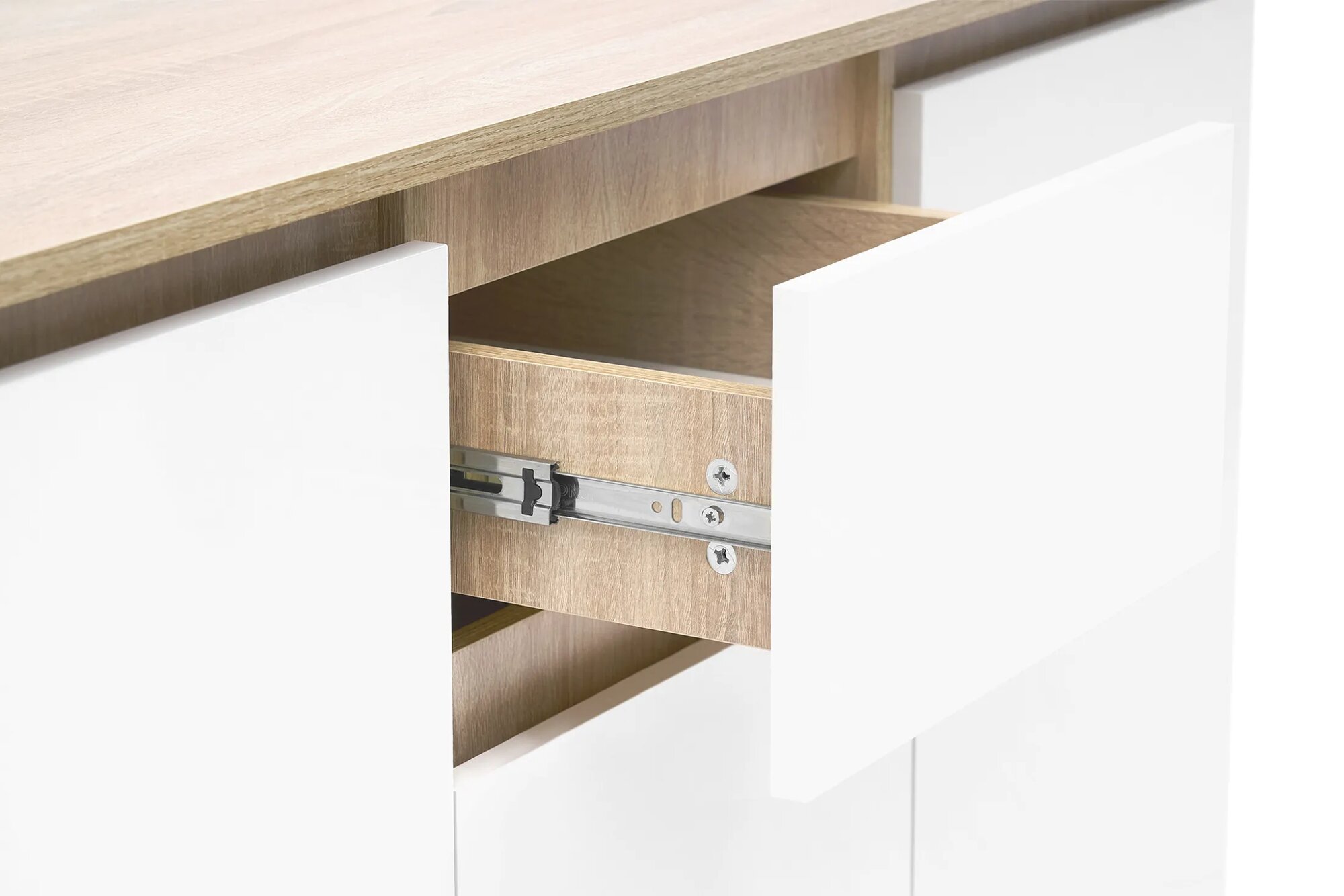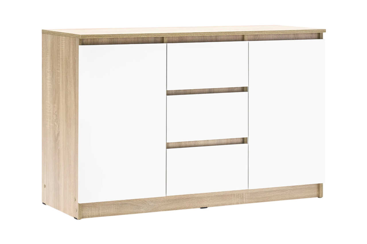 Купить Комод "Челси 1200" 2 двери, 3 ящика, белый глянец/дуб сонома ЛДСП, 120*45*76,8 см
