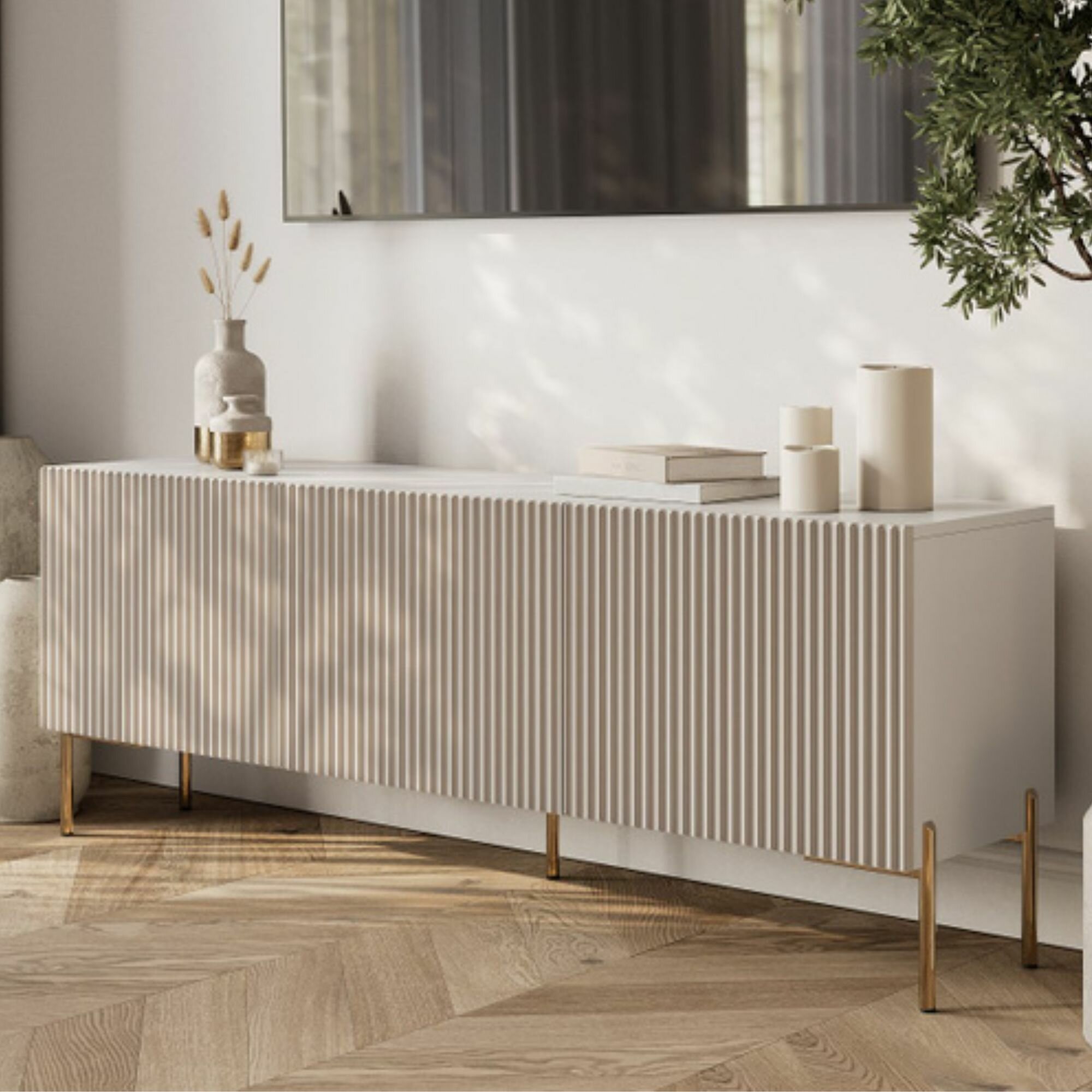 Купить Тумба под телевизор напольная 3 секции белая с бежевыми фасадами рифленая рельефная волна 150*37*57