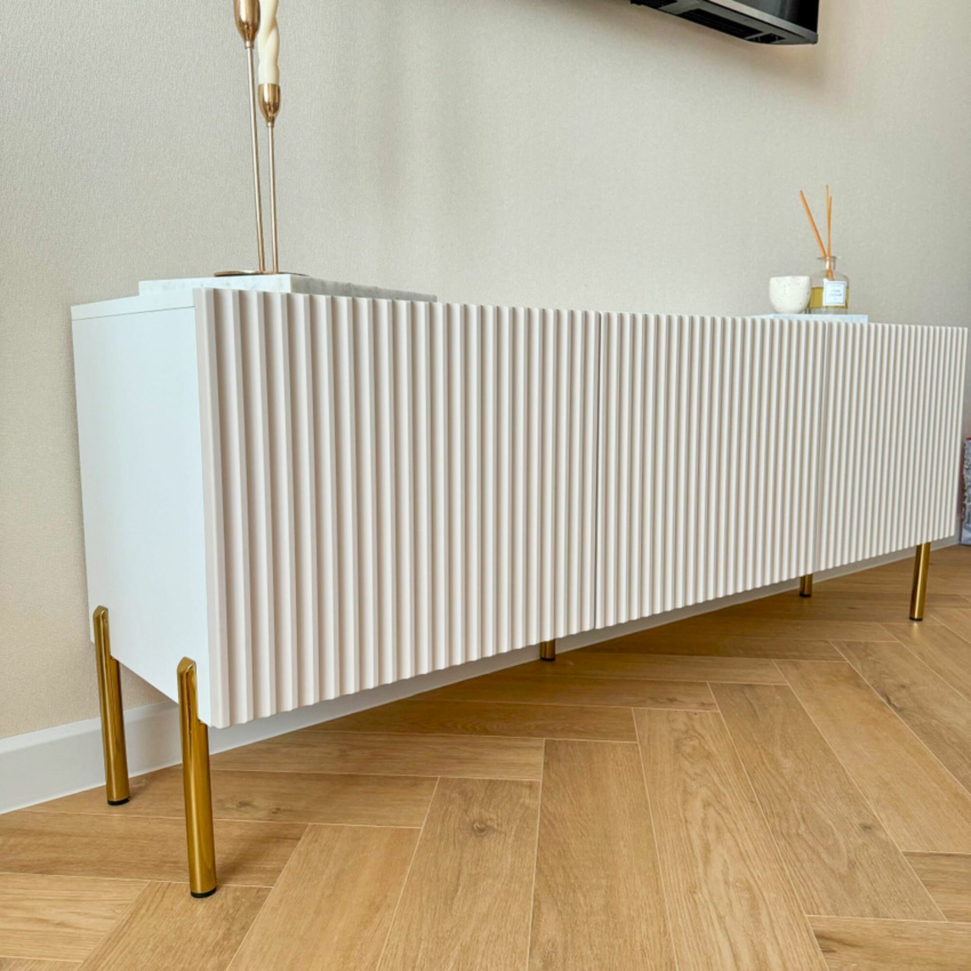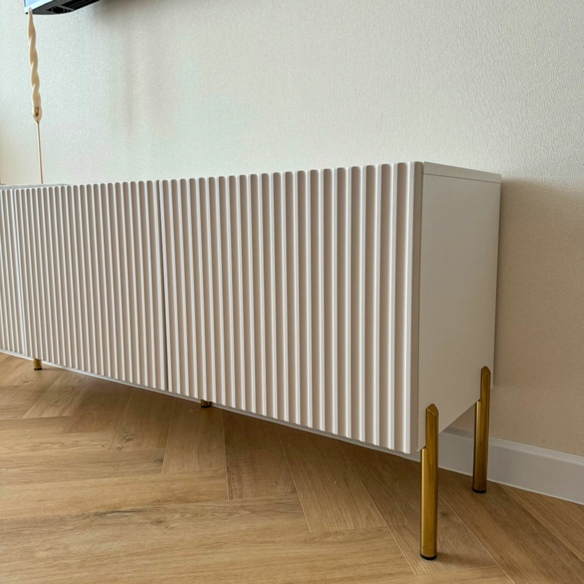 Ниже Вы можете прочитать отзывы на Тумба под телевизор напольная 3 секции белая с бежевыми фасадами рифленая рельефная волна 150*37*57, ознакомится с подробными характеристиками, посмотреть интересные обзоры и фотографии на Тумба под телевизор напольная 3 секции белая с бежевыми фасадами рифленая рельефная волна 150*37*57.