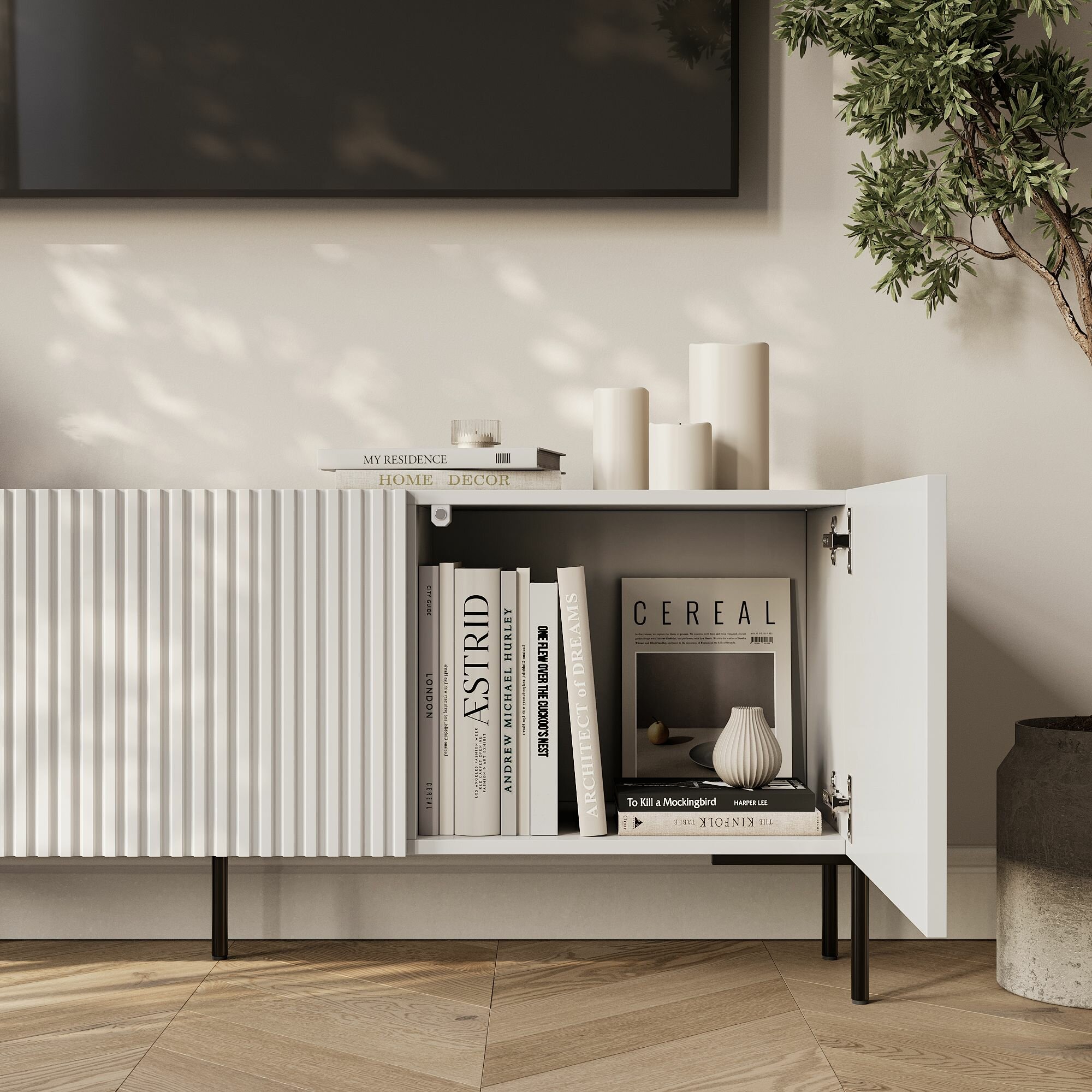 СохранитьТумба под телевизор напольная 3 секции белая рифленая рельефная квадратная волна 150*37*57 интересное: