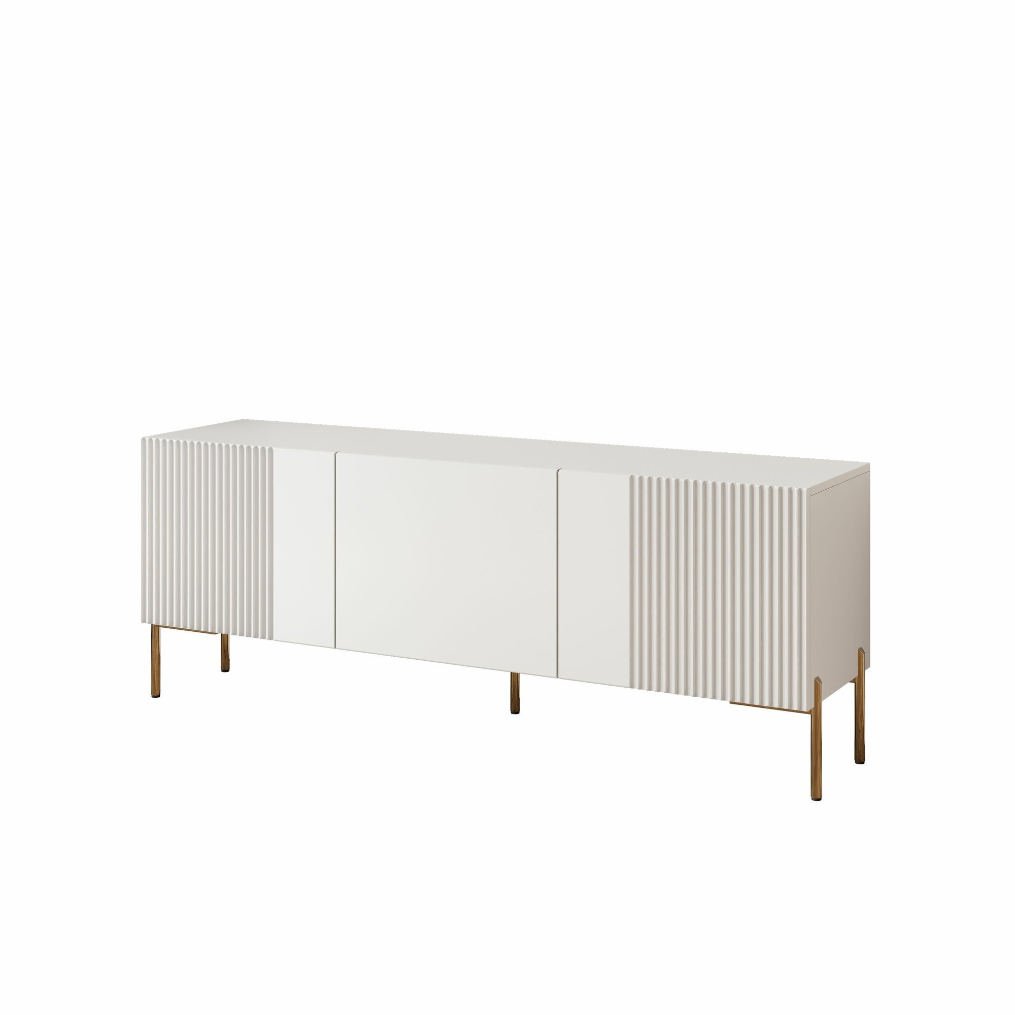 Тумба под телевизор напольная 3 секции белая с бежевыми фасадами рифленая рельефная волна 150*37*57