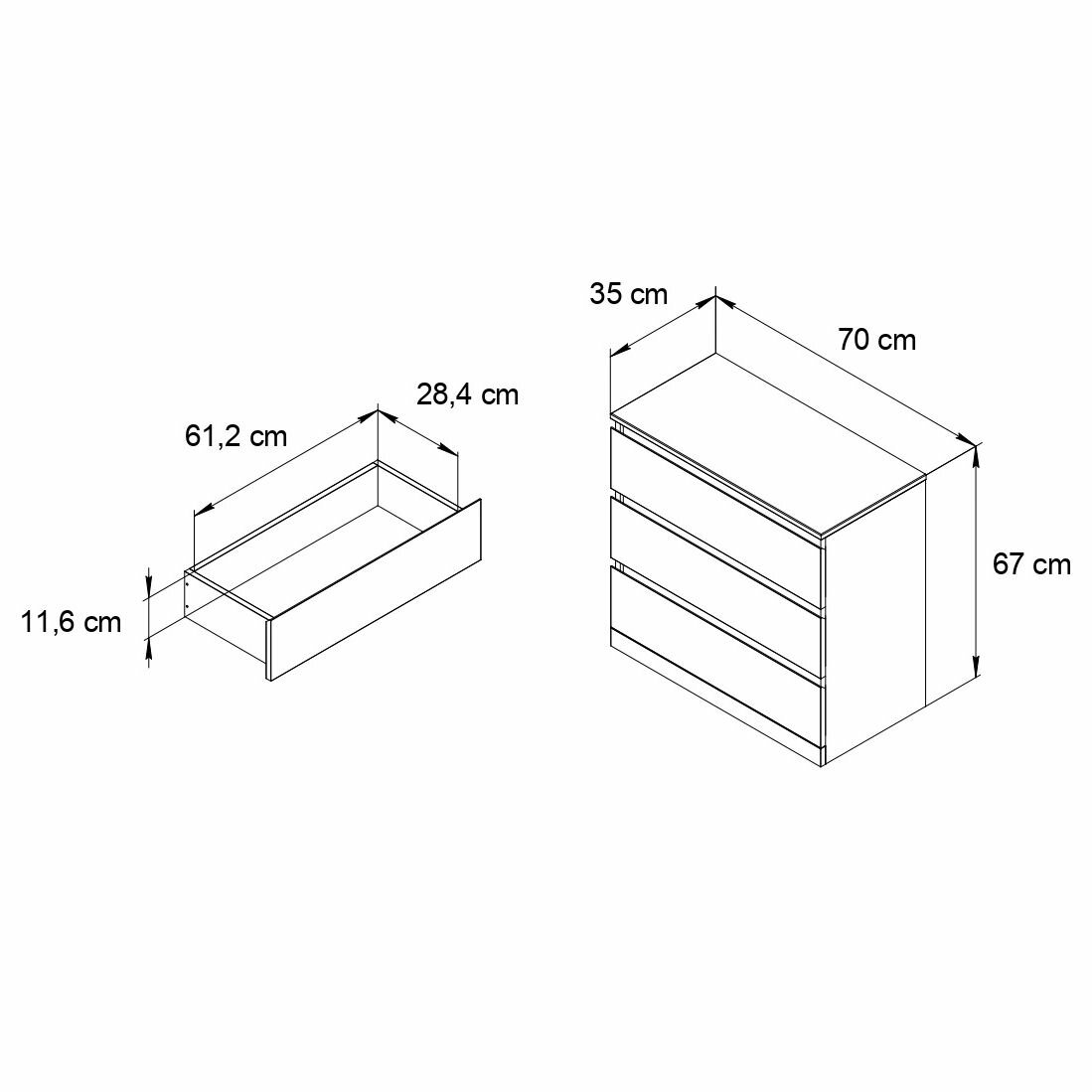 Комод для одежды Марм 70х35х67 см с 3-мя выдвижными ящиками со скосами и органайзерами, белый комод в скандинавском стиле