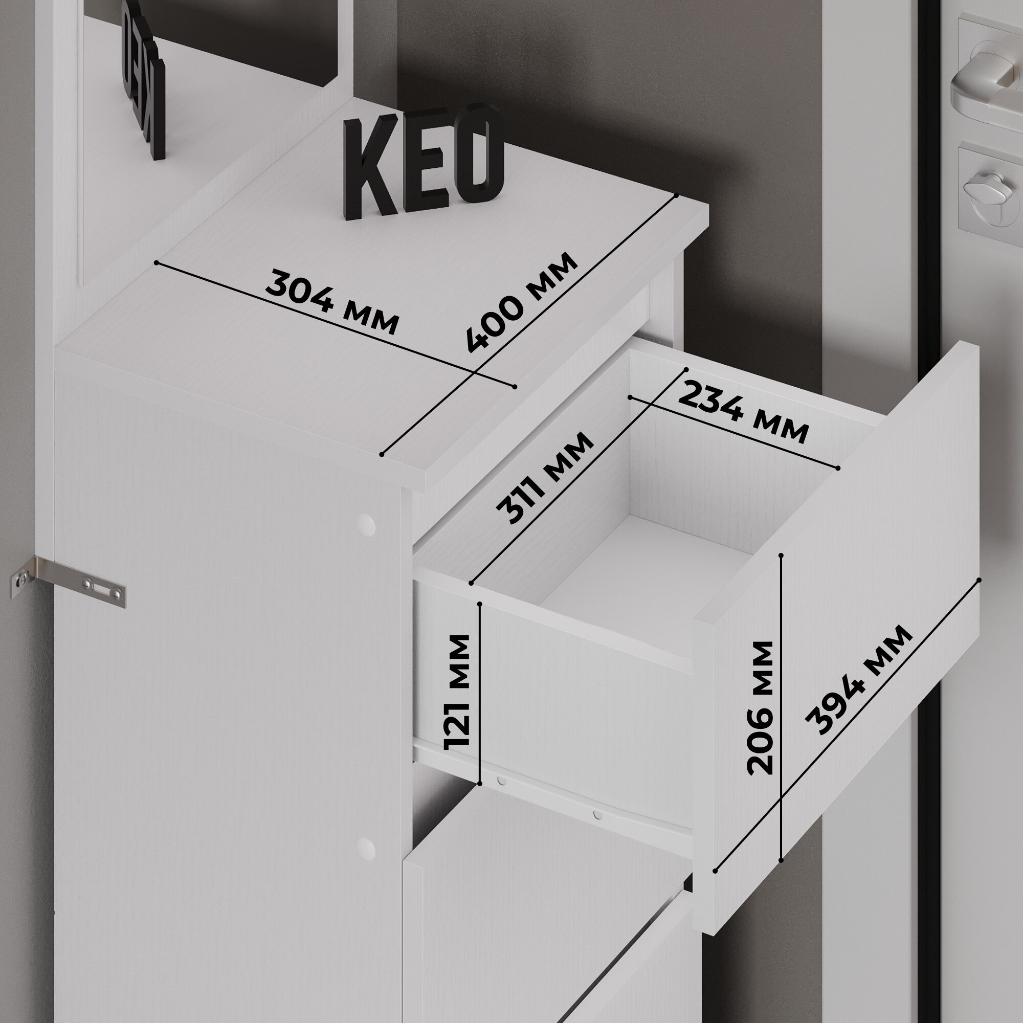 Комод Кео КМД-233 белый и сонома 166,5х40х30 с ящиками и зеркалом для вещей