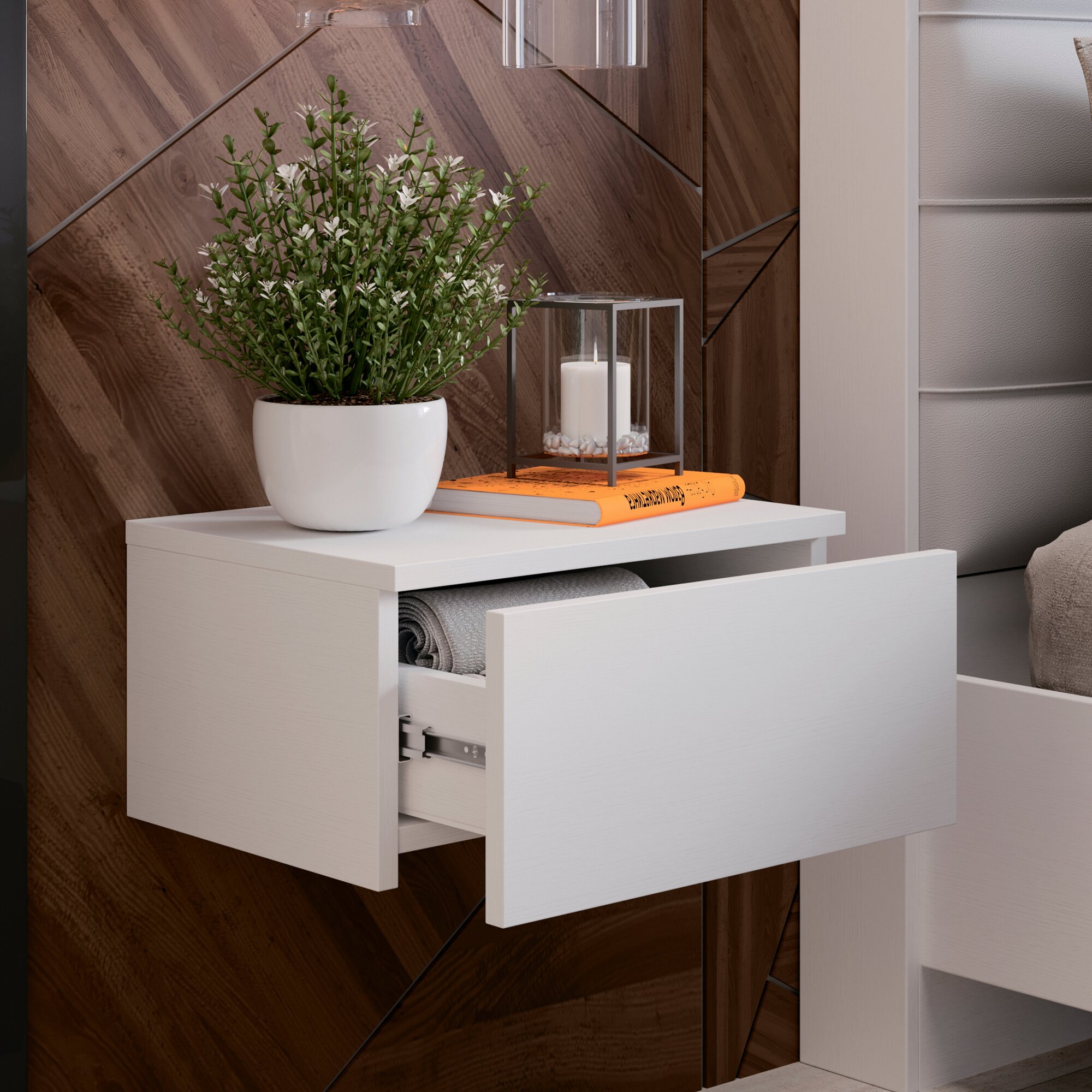Тумба подвесная, тумба настенная, тумба прикроватная, универсальная белая, Тип 1 интересное: