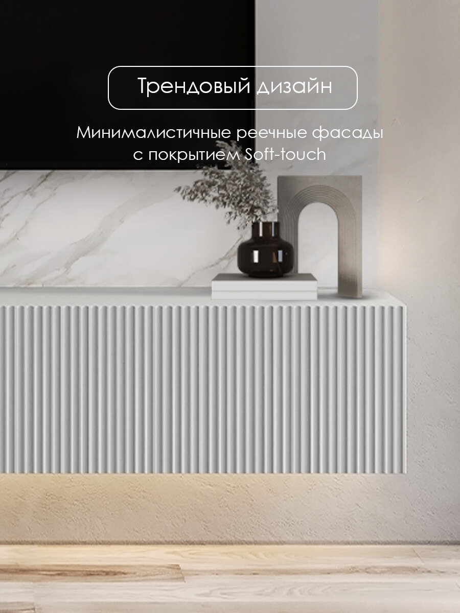 Тумба под ТВ Сканди Puzzlemebel подвесная для ТВ до 65 дюймов Камелия 1800 Белая
