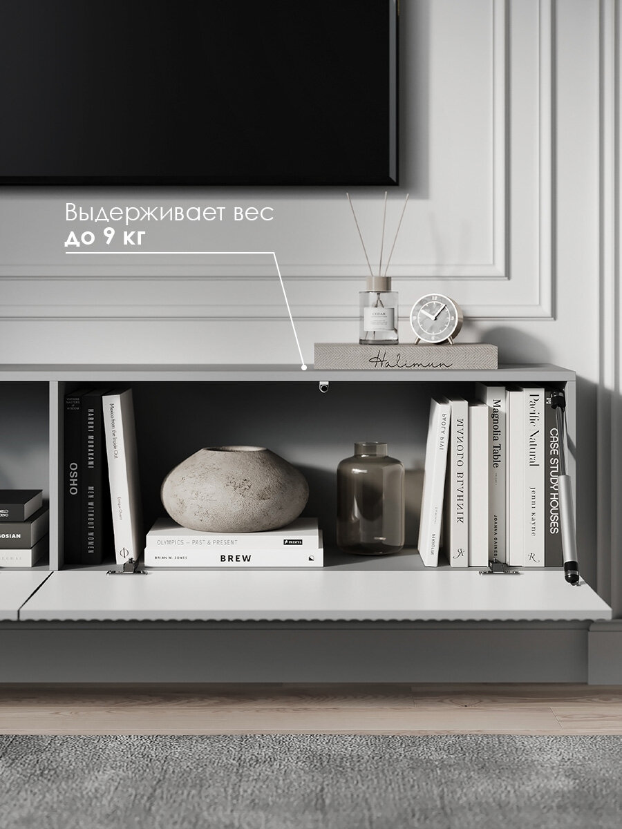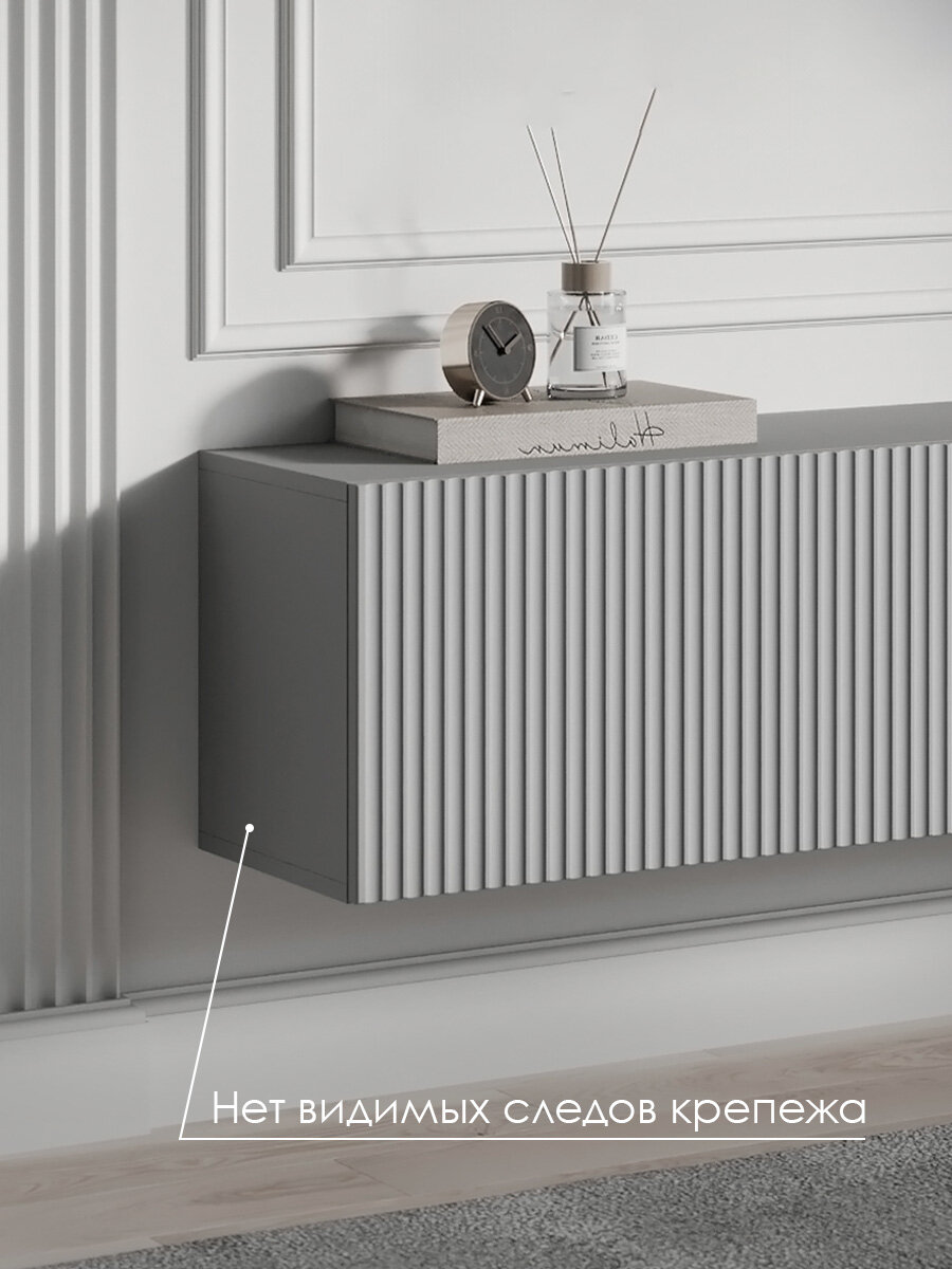 Тумба комод под телевизор Puzzlemebel Камелия, подвесная настенная консоль, 210 см, серый