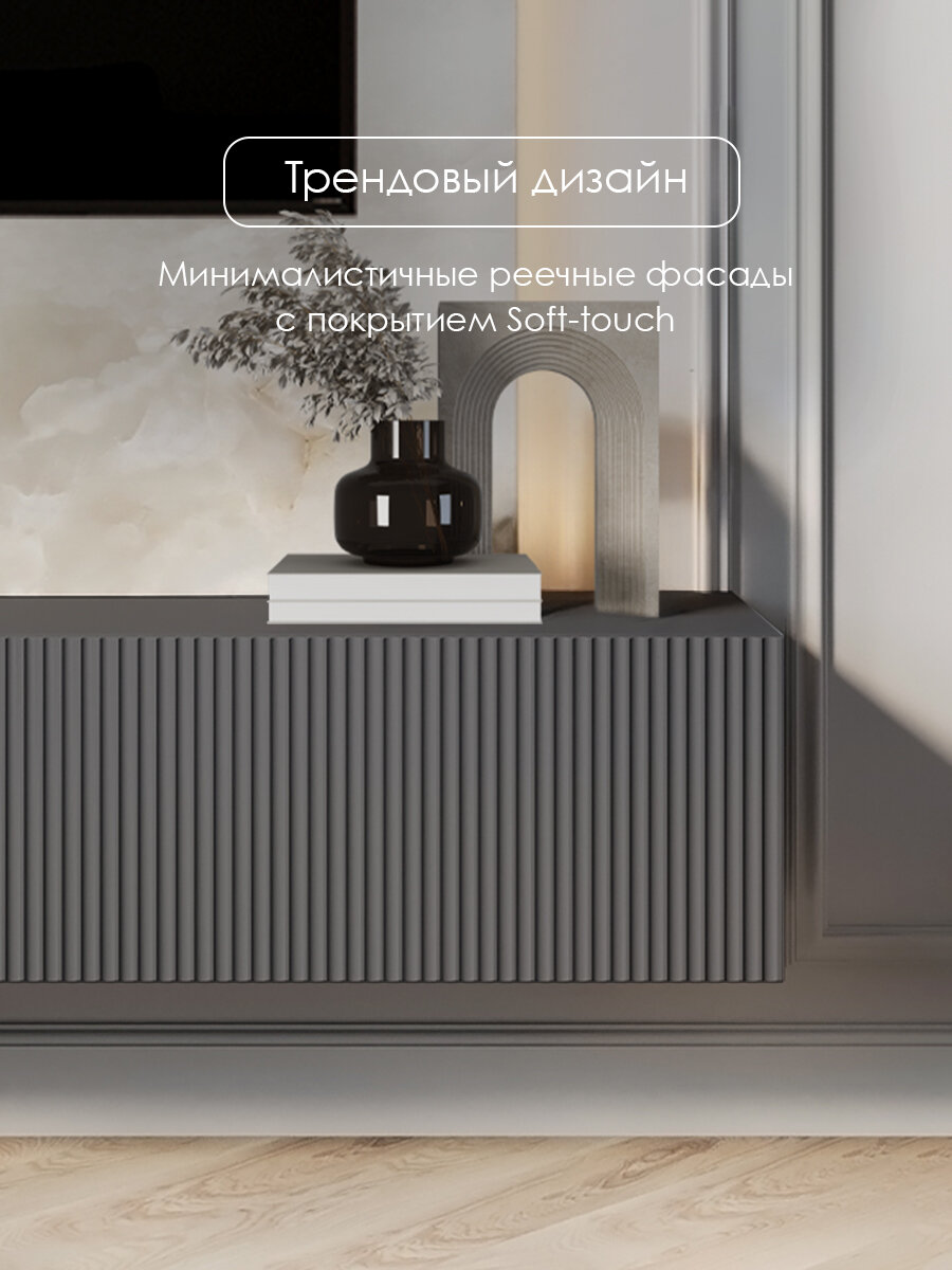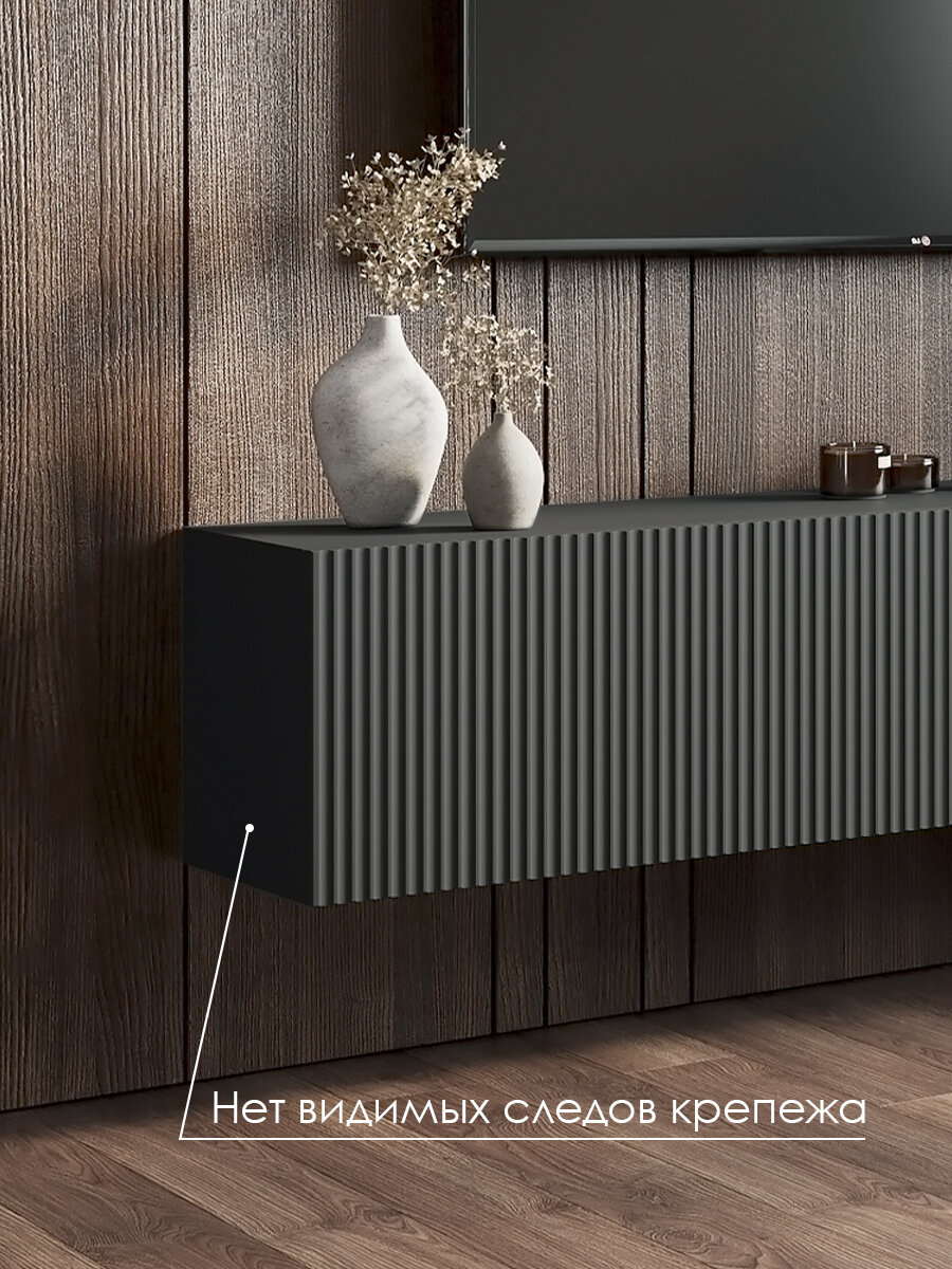 Тумба комод под телевизор Puzzlemebel Камелия, подвесная настенная консоль, 210 см, графит
