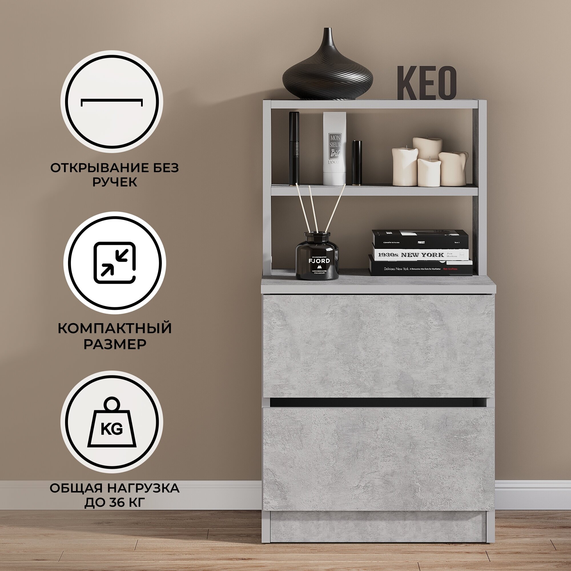 СохранитьТумба прикроватная 85х45х35,3 см с ящиками для вещей, тумба с полками с надстройкой, тумба в прихожую в спальню в детскую на кухню Кео СТМ-1103 бетон интересное:
