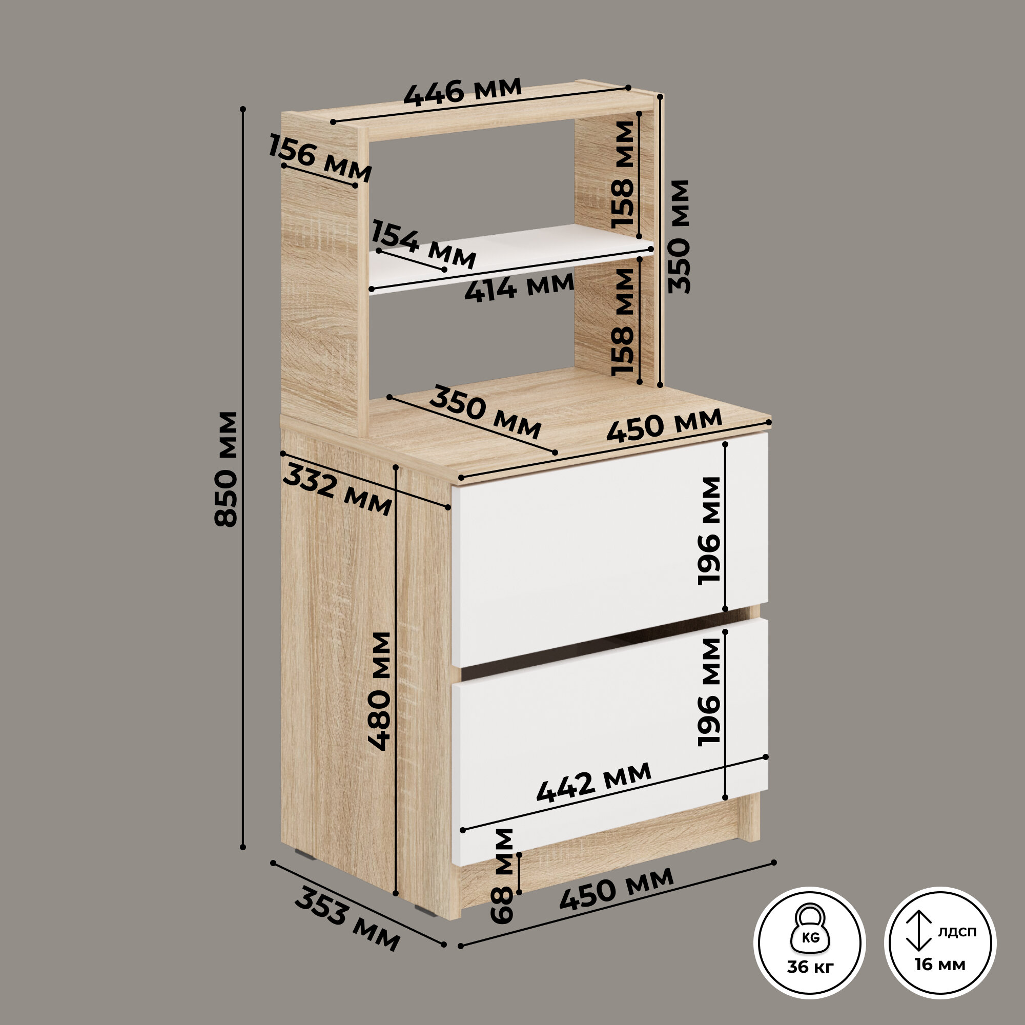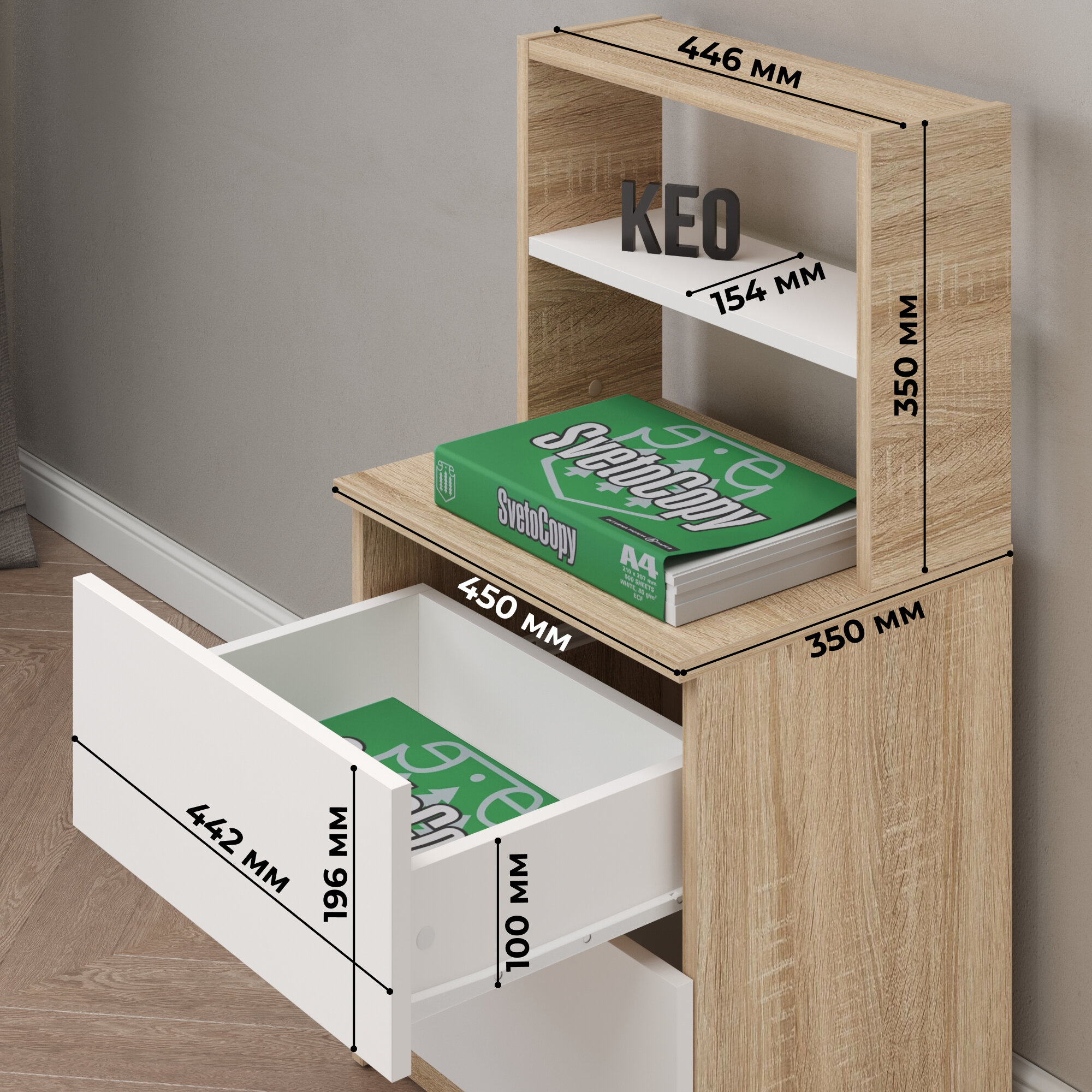 СохранитьТумба прикроватная 85х45х35,3 см с ящиками для вещей, тумба с полками с надстройкой, тумба в прихожую в спальню в детскую на кухню Кео СТМ-1103 белый и сонома интересное: