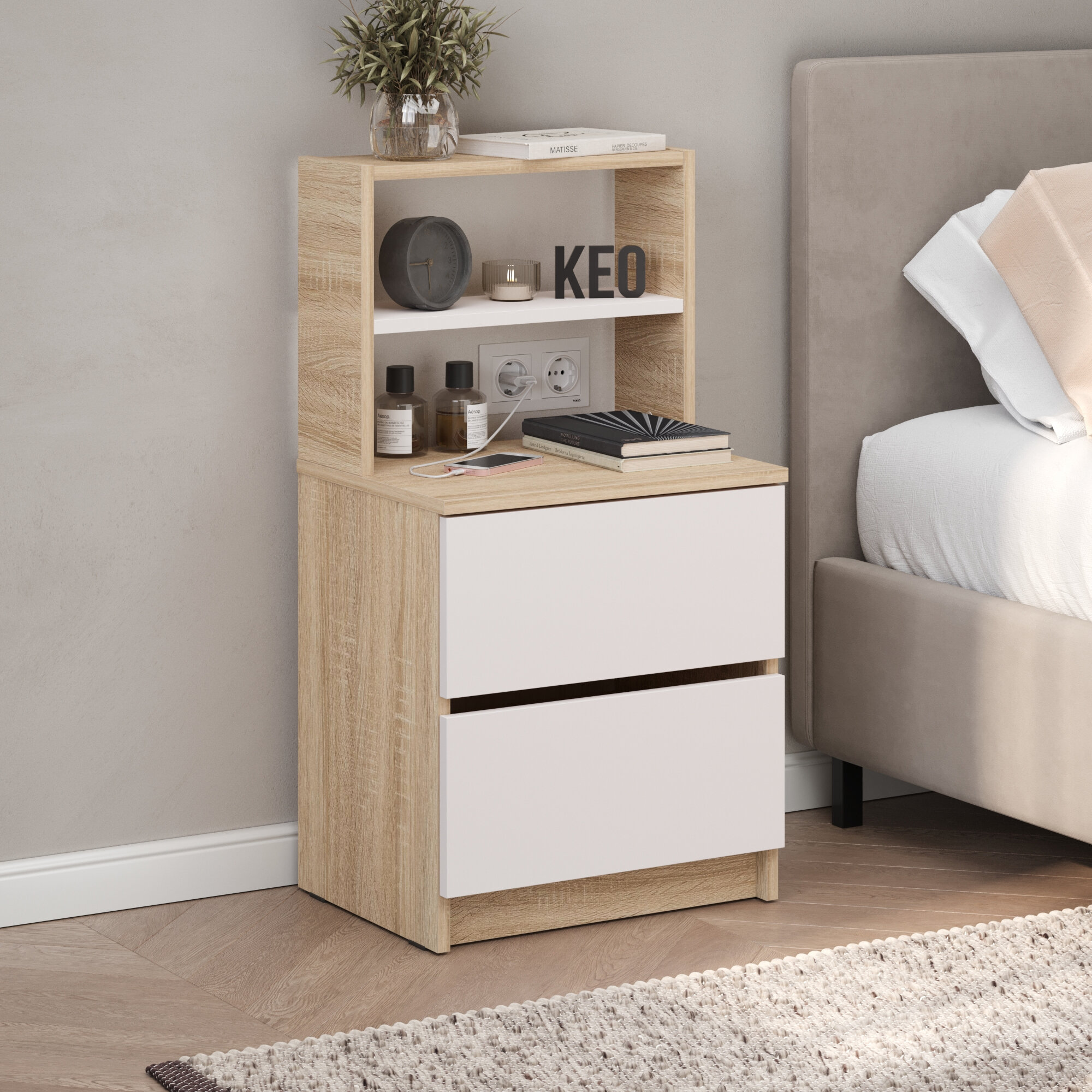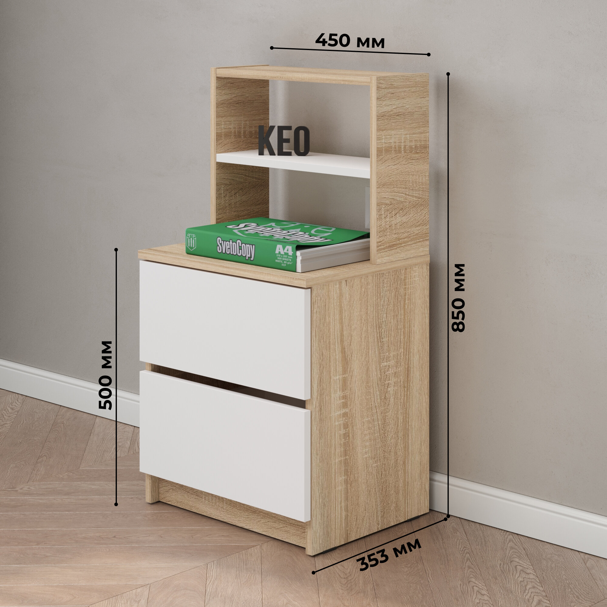 Купить Тумба прикроватная 85х45х35,3 см с ящиками для вещей, тумба с полками с надстройкой, тумба в прихожую в спальню в детскую на кухню Кео СТМ-1103 белый и сонома