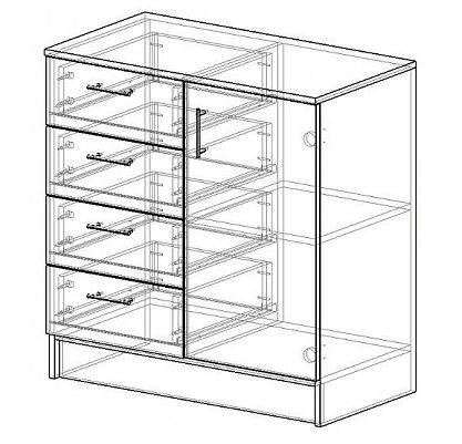 | Комплектация | Комод с 4-мя ящиками. Отсек с дверцей и полкой. |