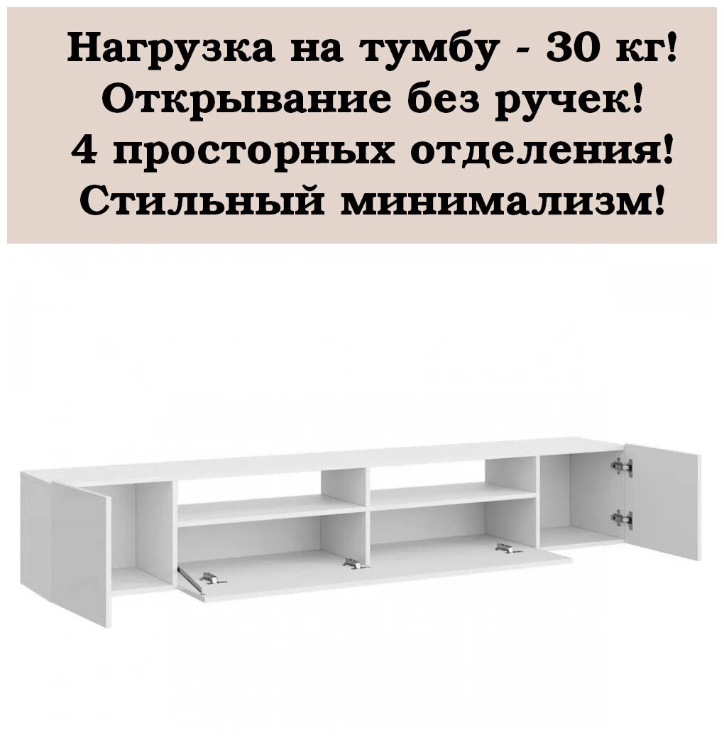 Купить Тумба под ТВ подвесная "Соло-16" - Белый (Гладкий) / Белый глянец