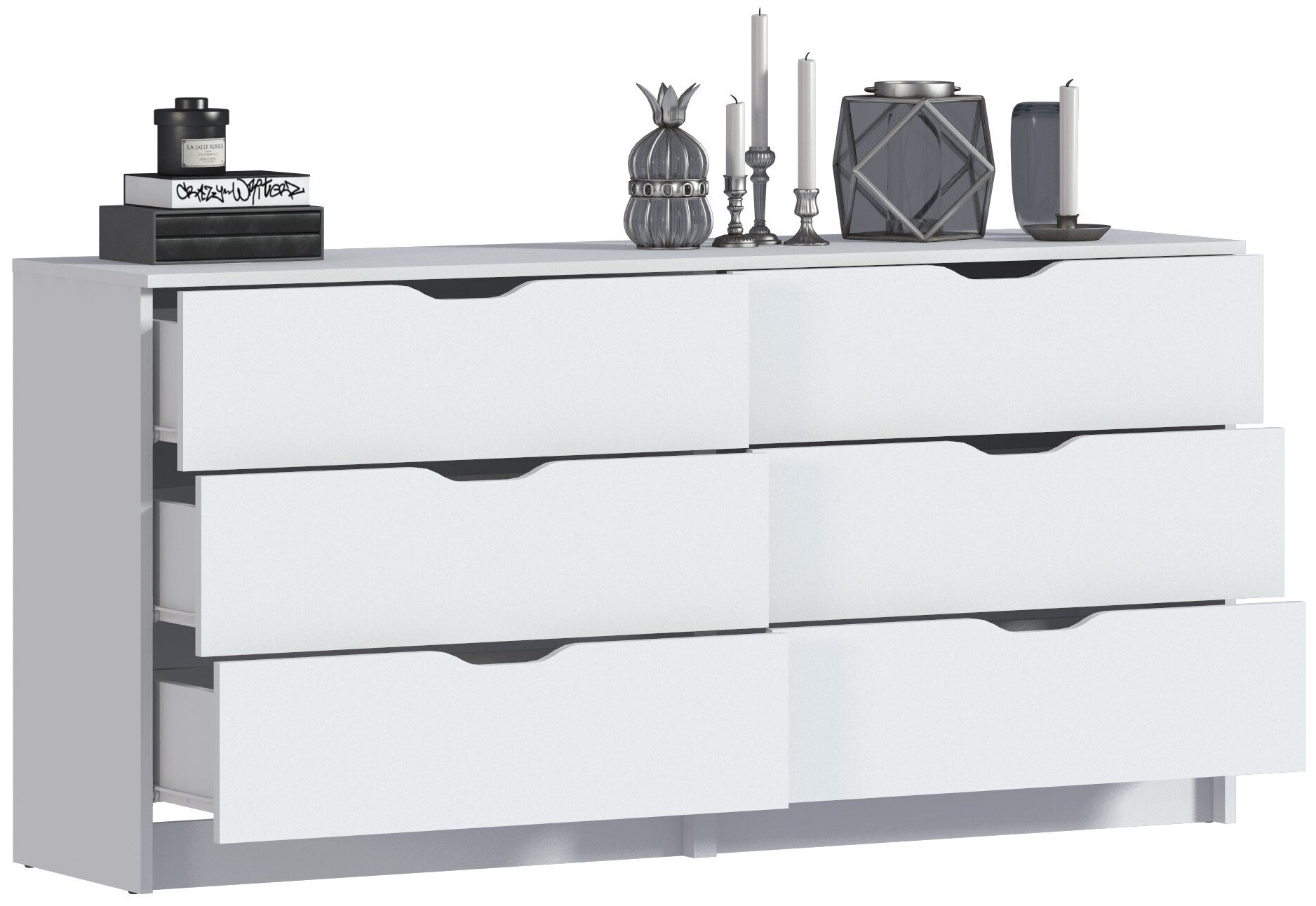Купить Комод столплит Бруклин СБ-3252/1 с 6 ящиками, без ручек, Белый 156х75х39 см