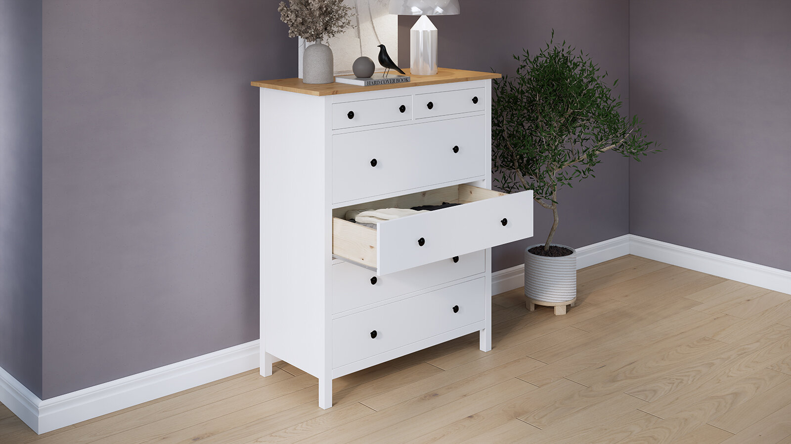 Деревянный комод 6 ящиков белый/светло-коричневый хемнэс, массив сосны, 108х50х131 см, Profi&Hobby