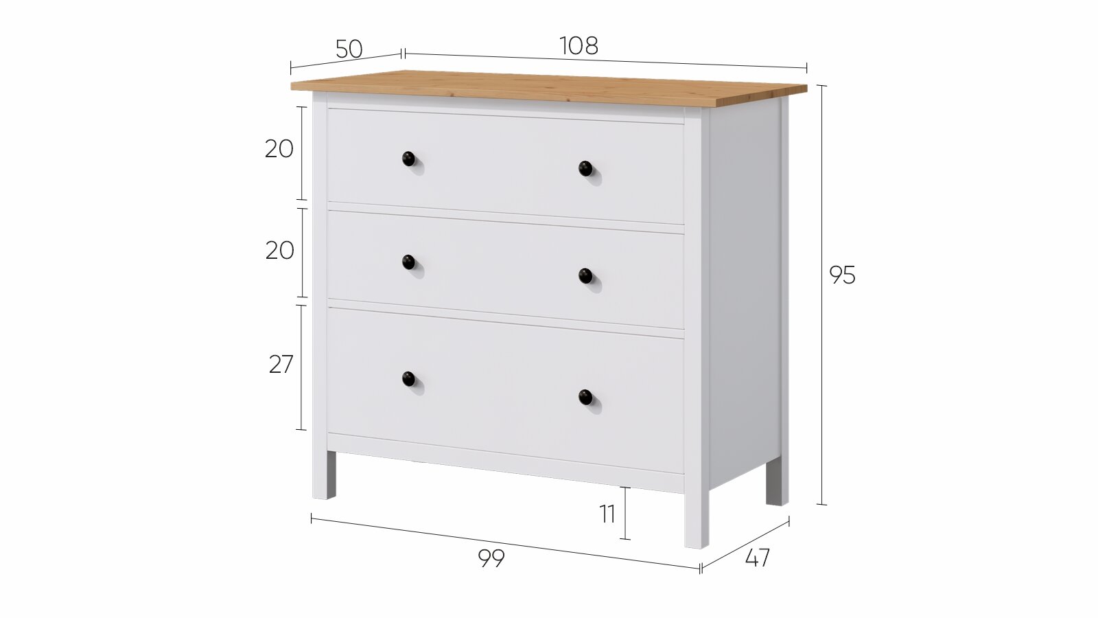 Комод с 3 ящиками деревянный, Хемнэс/Кымор, 108х50х95 см, белый