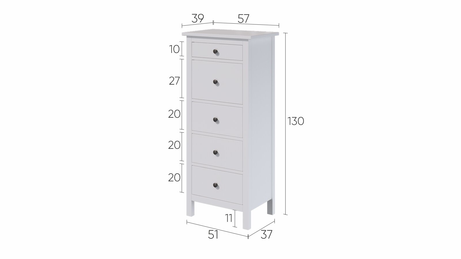 Комод узкий Хемнэс Hemnes/ Кымор, 58х131х40см, 5 ящиков, белый