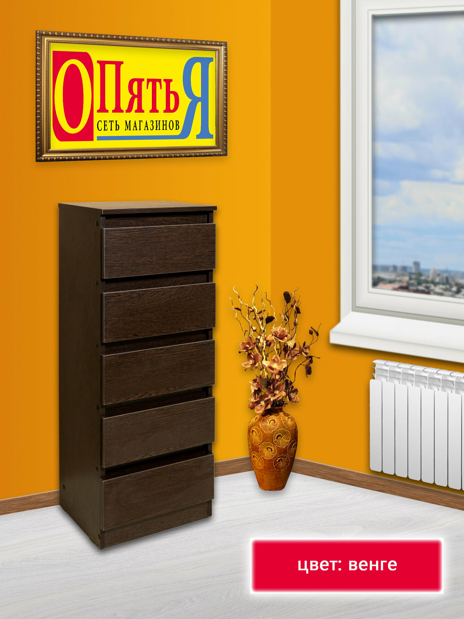 Комод с ящиками узкий деревянный для хранения вещей в коридор, прихожую, детский без ручек Венге интересное: